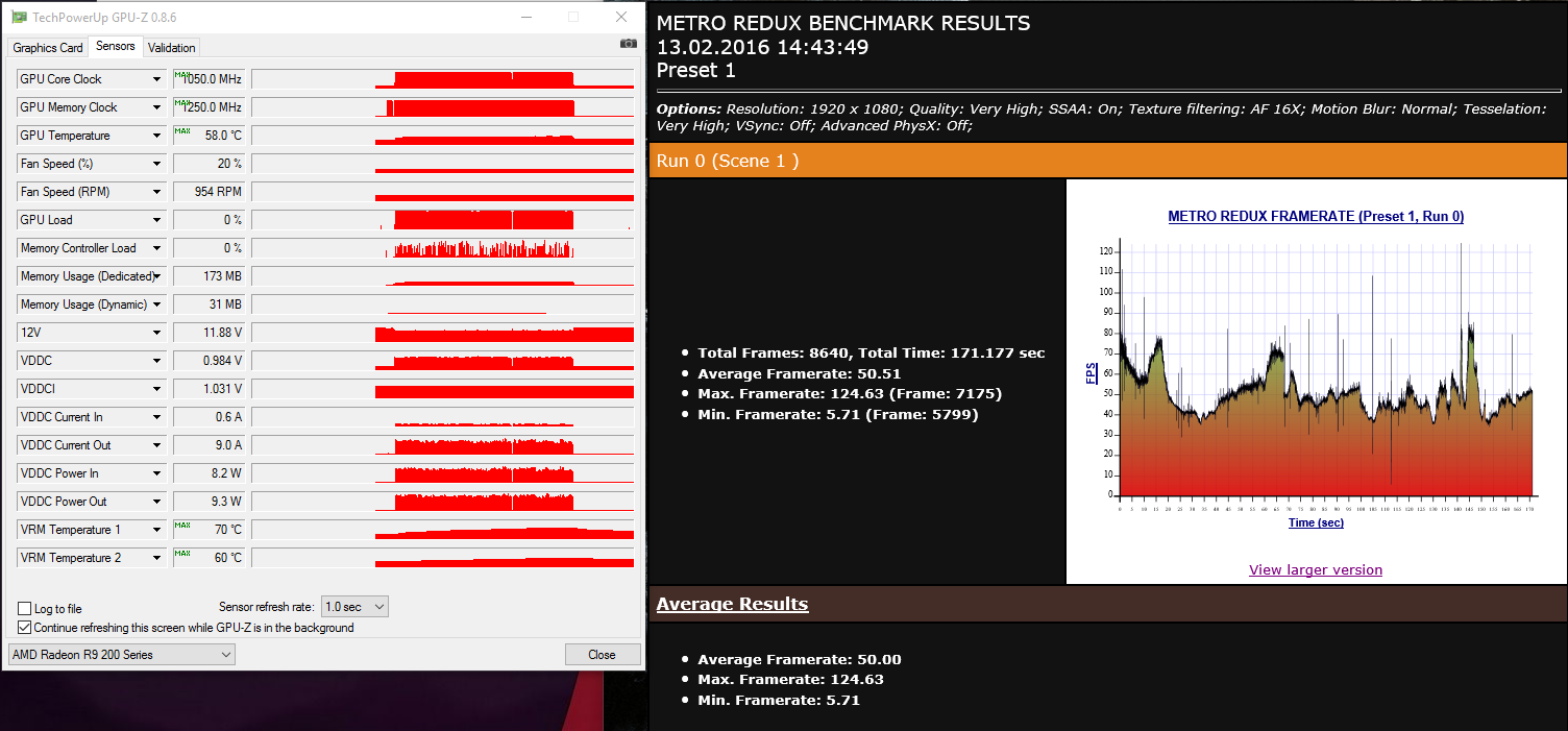 На экстремумы можно внимания не обращать, ИМХО... как в том же ГТА5 у меня иногда выскакивает макс ФПС 250+ при среднем около 50-60. Что это значит? Да ничего.