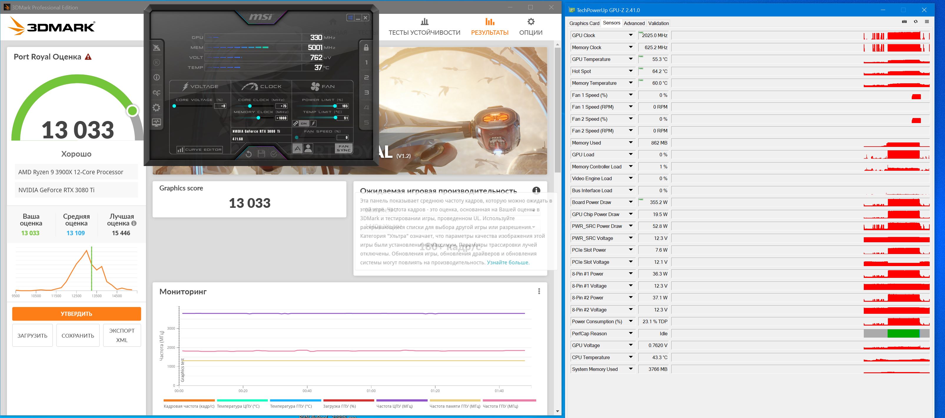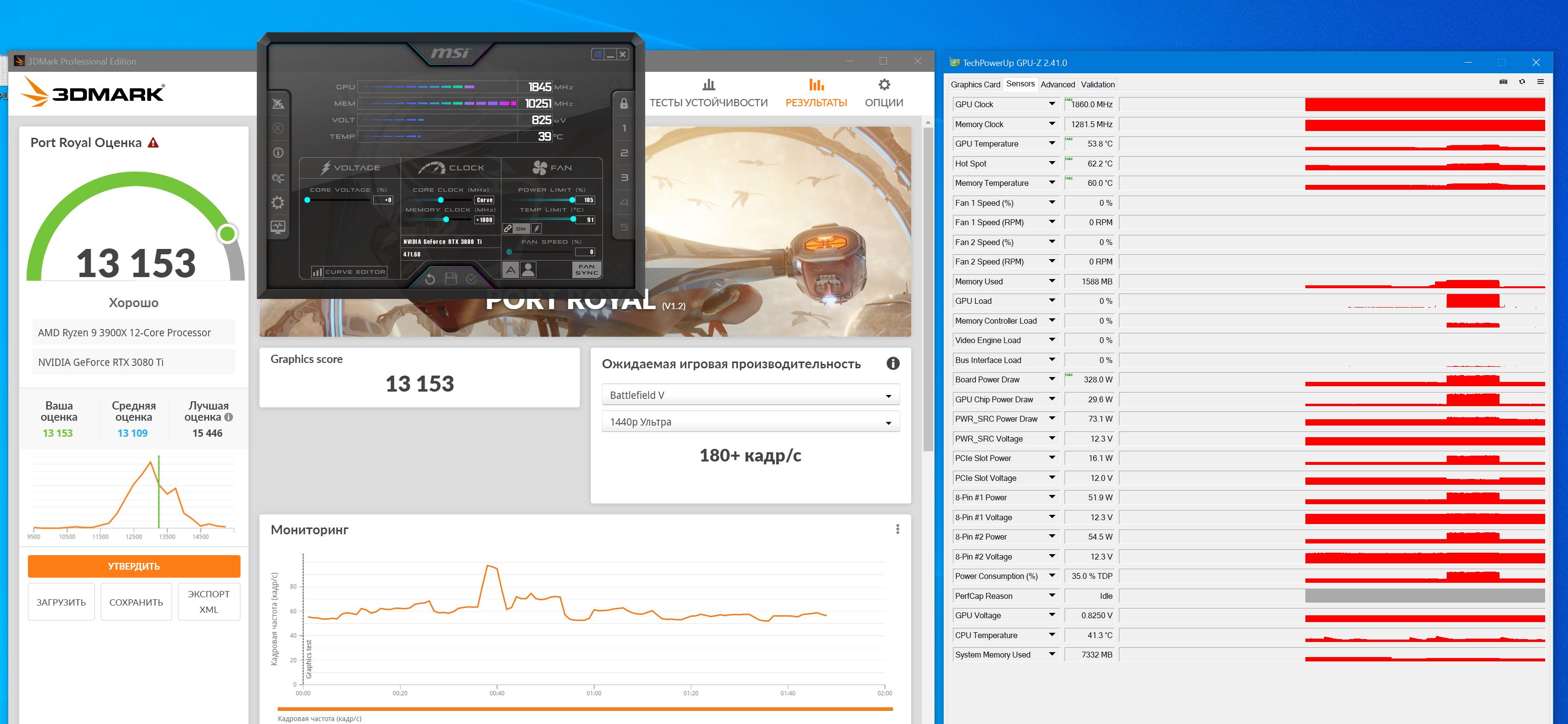 Я просто ползунком гнал +175 чип и память +1300. Максимум брал 14690 в порт рояле. Выше уже вылеты. Биос 1000W пока не буду юзать, у меня дома 27, на улице 30+. Тут ребята в +10 окно открывают и на видяхе температуры по 40 градусов на воздухе. Станет по прохладнее затестирую.
