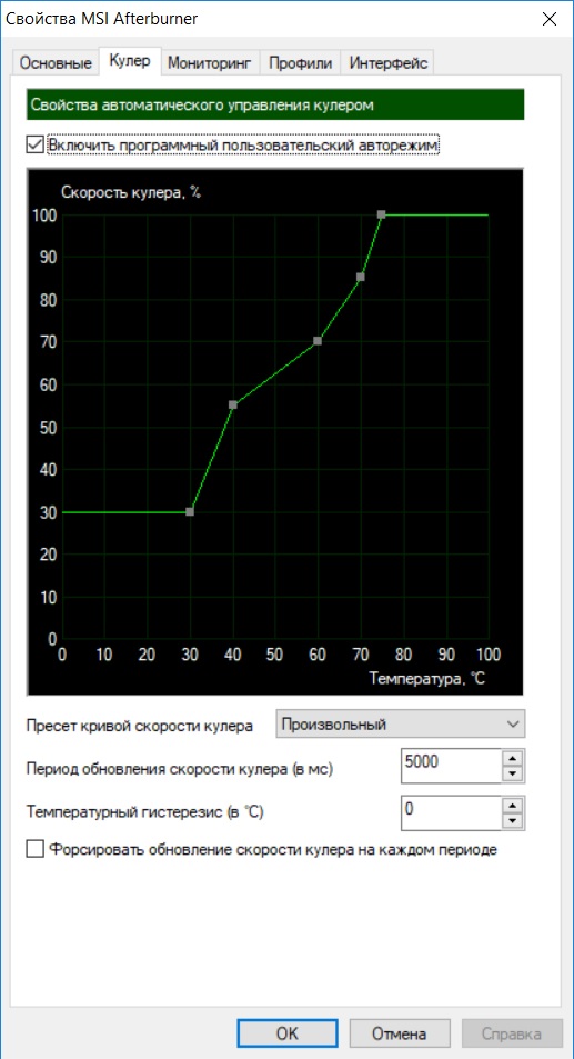 Q: Как сделать чтоб вертушки на ВК начали крутиться при 30-40 градусов, и плавно набирали обороты по мере нагрева? A: Использовать MSI Afterburner или Sapphire Trixx. Важно помнить, что нужно использовать только одну программу для разгона/регулировки карты.