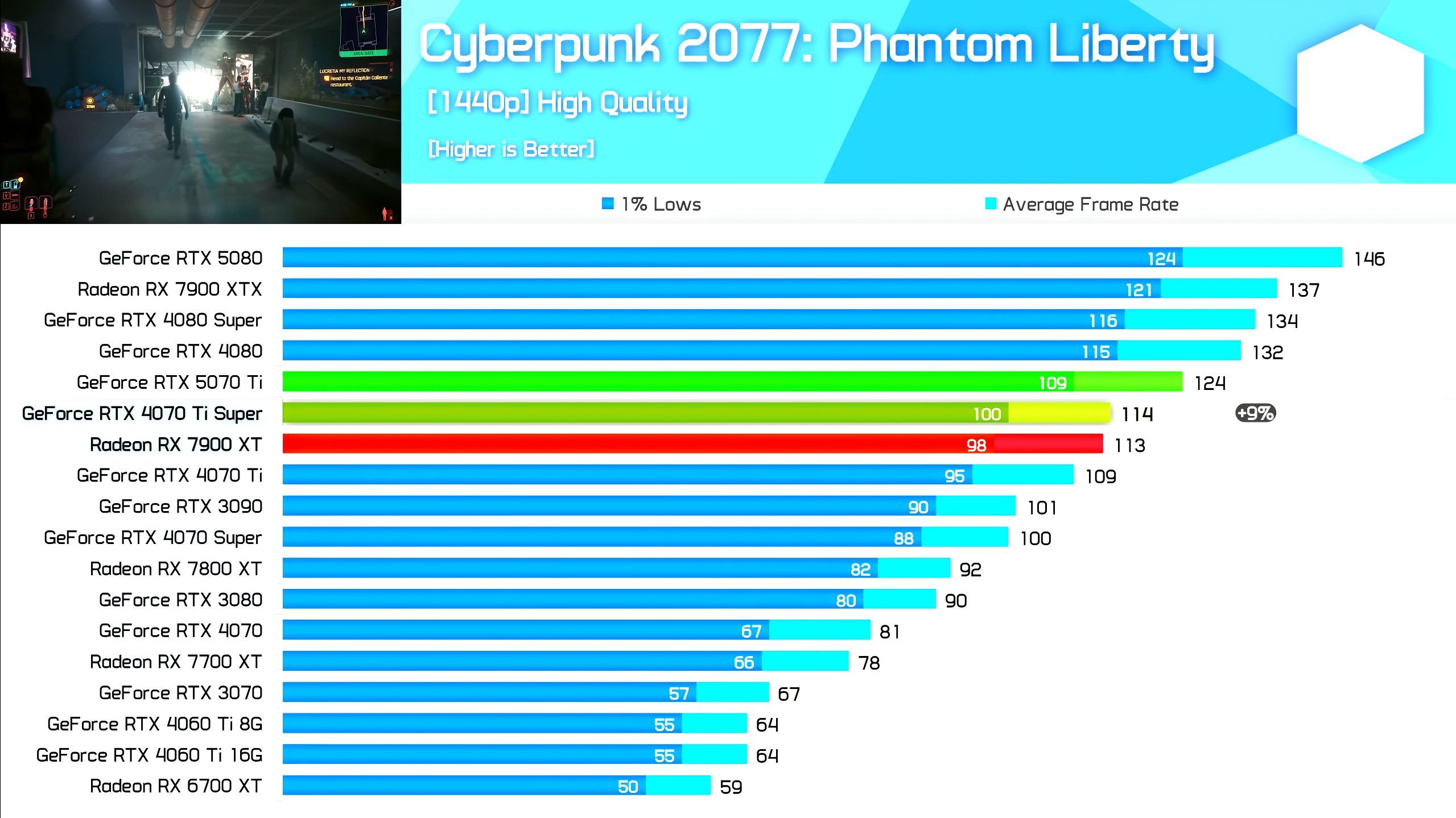У нормальных тестировщиков я вижу разницу в 10% между 5070ti и 4080S, и это без лучей. Стоит включить лучи, как они буквально становятся одинаковыми.