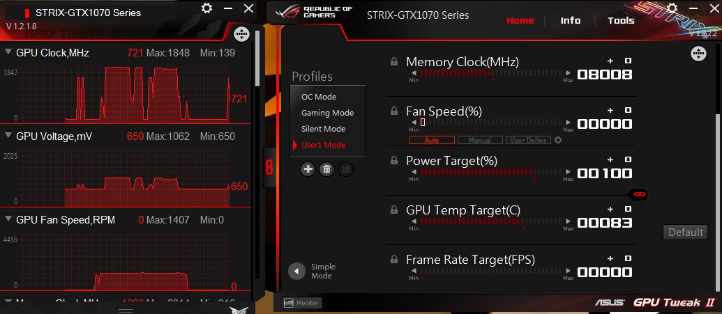 Ребят всем привет,вопрос может быть конечно уже заезженный с этой температурой,но ответа так ни где и не нашел,купил с неделю где то Asus Strix 1070 8gb,поставил прогу GPU Tweak 2 погонял, потестил,температура 69 градусиков стабильно везде при установленном лимите Temp Target 83гр,и Power Limit 100,карту не гнал сильно,да и других ребят вроде по обзорам даже в разогнанном состоянии выше 70 не уходит,а вот дня через два,вылез сюрприз, температура поехала вверх до 83 градусов,то есть уже не держит ту температура которая была изначально,даже грубо говоря в не разогнанном состоянии температура растет до этой цифры которая установлена в temp target 83,поигрался с этим ползунком температурным выставил на 69 градусов вроде держит,но частоты падают,сталкивался ли кто нить с этим?проблема ли эта вообще?или все в норме?стоить вызывать экзорциста или пока рано?=D