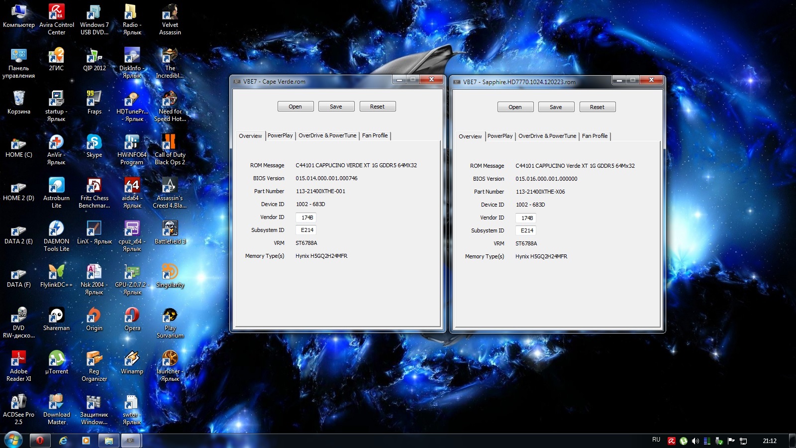 Так ты возьми свой родной биос сохрани тем же CPUz(обязательно сохрани свой нередактируемый родной биос в отдельной папке!), скачай нужный тебе по частотам GPU и памяти ( тип и размер не имеет значения), как на скрине и редактируй так как тебе угодно,свой же отредактируешь по частотам и напруге и свой же прошьёшь ориентируясь на скаченный биос с других рабочих карт.В VBE7 на скрине видно какая микруха VRM распаяна. Скрин: родной биос и от ОС версии Сапфира. Добавлю скрин 5 минутки бублика с разгоном ,при стоковом напряжении.Ядро гонится и выше но при повышении напряжения,порог на стоковой напруге 1100 Мгц,память выше смысла гнать не вижу(хотя задел ещё есть и приличный,1627Мгц ),производительность не увеличивается а нагрев и перспектива артефактов да.