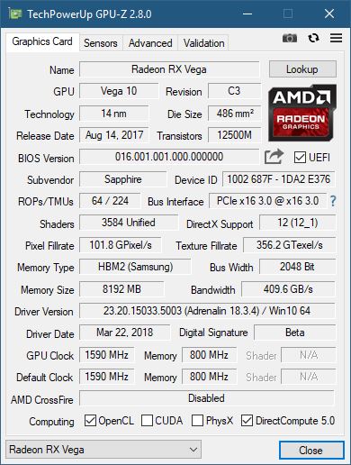 RotedVictus Видеокартой доволен, в основном в играх держит выше 1400МГц, в некоторых (Ghost Recon Wildlands, Forza Horizon 3) практически всегда выше 1500МГц, вот еще бы вентилятор не чудил, ну похоже на то, либо там какойто хитрый контроллер и пока даже АМД драйвера не умеют в него. Я общался с автором HWiNFO, как результат через костыли сделал, что через костыли "видит" что вентилятор остановился, но с небольшым лагом в пару секунд, но случаются ложные определения остановки. ГПУ-З пишет что память Самсунг