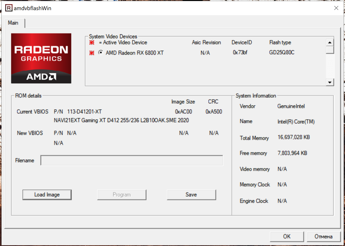 нашел amdvbflash 3.15, который может прошить карты 6000, он есть в сборке https://download.gigabyte.com/FileList/ ... 1210.1.zip сохраняет полные биосы на 1 мб. И где бы еще взять биосы полные Скиньте плиз кто может свой биос от 6800xt от любых карт. Свой же биос прошился успешно у меня red devil 6800XT версия SME 2020, на tech версия SMG 2020, но там размер неправильный, если у вас есть такая же карта и биос отличный от моего скиньте плиз. Если шить от других вендоров пишет несоответствие, но это вроде как можно обойти в линуксе.