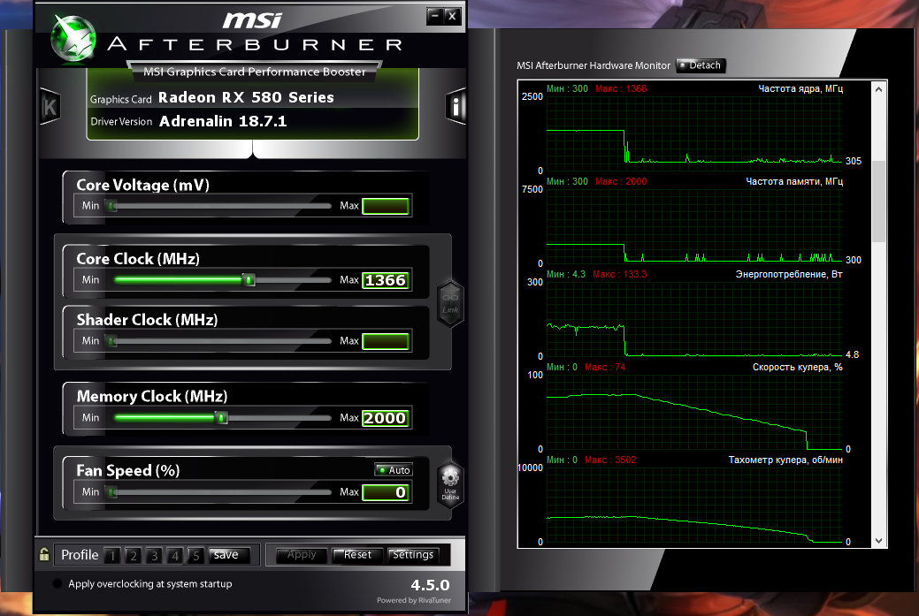 HELP Я переметнулся в красный лагерь и немного тут под офигел ноги уже болят от танцев с бубном . Ребята нужна помощь купил Sapphire Radeon RX 580 8GD5 Special Edition METAL BLUE NITRO+ она с коробки не хочет стабильно работать без стороннего ПО (msi afterburner) ( до этого был владельцем двух зеленых ничего подобного не было ). Вообщем она в играх и тестах самостоятельно не разкручивает вентиляторы выше 25% стрес тест по GPU в AIDA64 проходит нормально ( минут тридцать тестил ) система в ребут не уходит в FUR mark долго не тестил минут 15 и решил поиграть в игрушки и тут началось на максимальных настройках прогревается до 75-76 градусов и уходит в черный экран звук репит вообщем приходится перезагружаться если снизить настройки графики на средне высокие прогревается снова до тех же температур(75-76) но только дольше ждать надо и тут в черный экран не уходит начинают зеленеть текстуры ( в точечку) (углы домов края машин короче по изгибам ) незнаю может если так подольше поиграть тоже ушел в черный экран . С Мsi afterburner другое дело включаю Fan speed с настройками по умолчанию и все нормально ночь без проблем проиграл температура максимум 56 на( ультрах) вертушки крутятся по температуре на равных никаких проблем полет нормальный . Никаких манипуляций с видеокартой не делал не разгонял не перепрошивал переключатель дуал-биос на тот который стандартный ( не облегченный) Драйвера последние Адреналин 18.7.1. пробовал и на предыдущих. перед сменой драйверов чистил програмой display driver uninstaler через безопасный режим . Я так понимаю все что сделал в Мsi afterburner наверное можно сделать и в Wattman настроить вертушки температуры. Дело вот в чем так и должно быть Красные без стороннего ПО не могут .Вообщем кто в курсе помогите. P.S. в AIDA64 в тесте без помощи Msi afterburner 76 Градусов в ребут не уходил паралельно GPU-Z сенсор мониторил частоты несбрасывал ни по чипу ни по памяти . с помощью Мsi afterburner в AIDA64 Температура выше 60-ти неподымается.