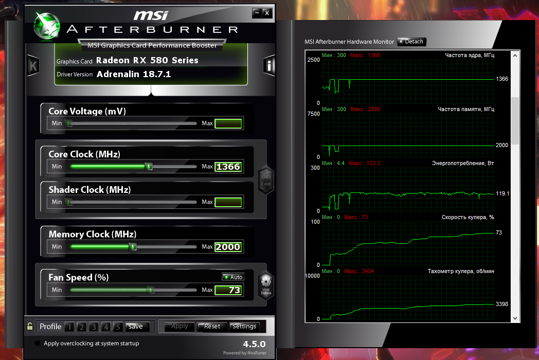 Q: По мониторингу напряжение на GPU немного отличается от установленного. A: Реально напряжение выставляется кратно 6.25 и округляется в большую сторону. То есть, если Вы выставили 1137, то реально у Вас будет 1137.5, а если выставили 1138, то уже реально будет 1143.75 мВ.