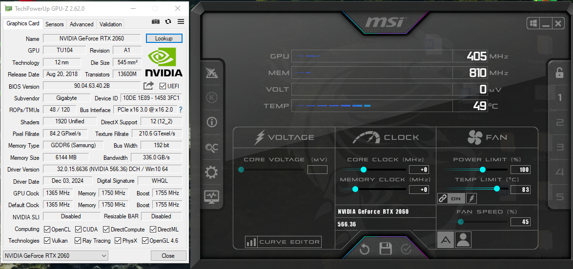 Ребята, другу помогал настроить 2060с под сталкера. Какая-то 2-х феновая Гига. Любые манипуляции проводил, драйвер 566, МСИ АБ последний, не бета, но даже через ДДУ НИКАК не появляется возможность настраивать кривую((( И нет ОС сканнера. Это модель такая или надо искать что-то другое? Вынь10 22Н2 5131, z370 Гига мать. Все пашет, но разгон чипа - только руками через ползунки доступен. НИКАКОЙ режим доступа и управления в АБ не помогает, все так же. К слову, неплохо карта поехала, со штатной напругой +1000 по памяти (не предел) и +90 по ядру. Часы Сталкера 2 держит, но Т 80 гр. Это вопрос вдогонку - надо ли обслуживать при такой Т (200 Ватт лимит). Вроде и много, и мало, но обороты фенов выставил 100% - это с ними 80 гр.