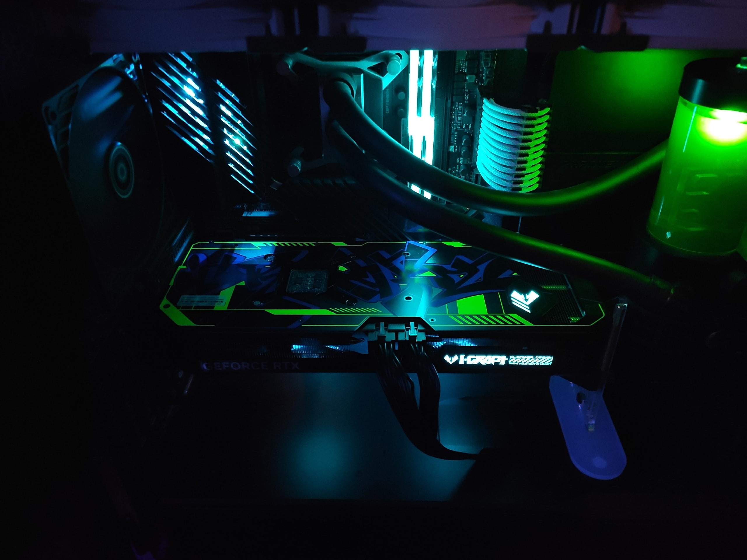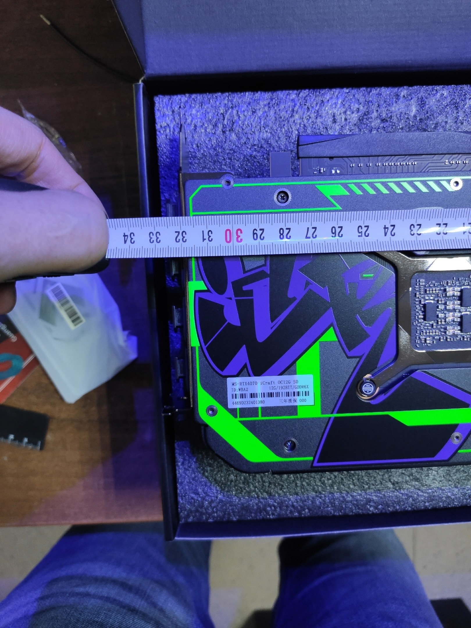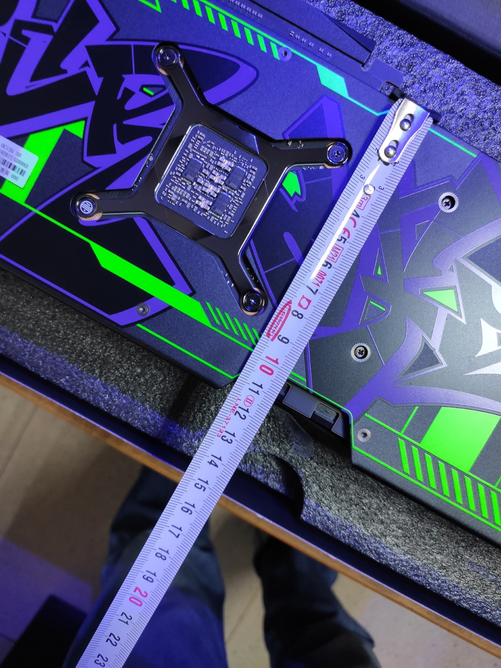 Карта оказалась длинее на 2-3мм чем MSI 3080ti x trio, пришлось двигать контур СВО В конце августа была куплена за 60450р на OZON Карта в отличии от множества 4070 имеет два 8pin разъема питания Занимает два слота Имеет флуоресцентную окраску, светиться в UV Вентиляторы 90мм до 3к оборотов, слышно от 2к оборотов, 1800 об бесшумные Имеет металлический бэкплейт и кнопку переключения подсветки и подставку в комплекте 4 тепло трубки (визуально 6мм) пропаяны к ребрам В простое 26-27 градусов, в стрестестах и играх макс температура 60-61градус и 70 хотспот, при 1800 оборотах куллеров Дросселя не пищат