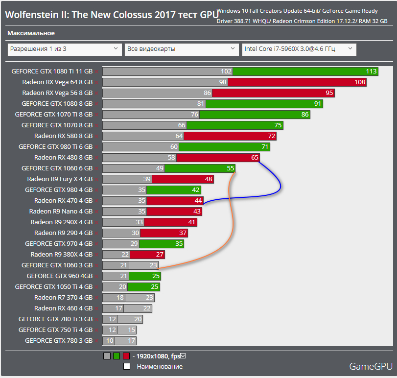 Q: Насколько RX 480 быстрее RX 470 при одинаковых частотах ГПУ+памяти? A: В среднем 4.3%. Но есть игры где разница достигает целых 10%! На практике на RX 470 многие производители ставят меньше фаз и более хилое охлаждение. Так что "в разгоне" и 24/7 преимущество у RX480 будет явно больше.