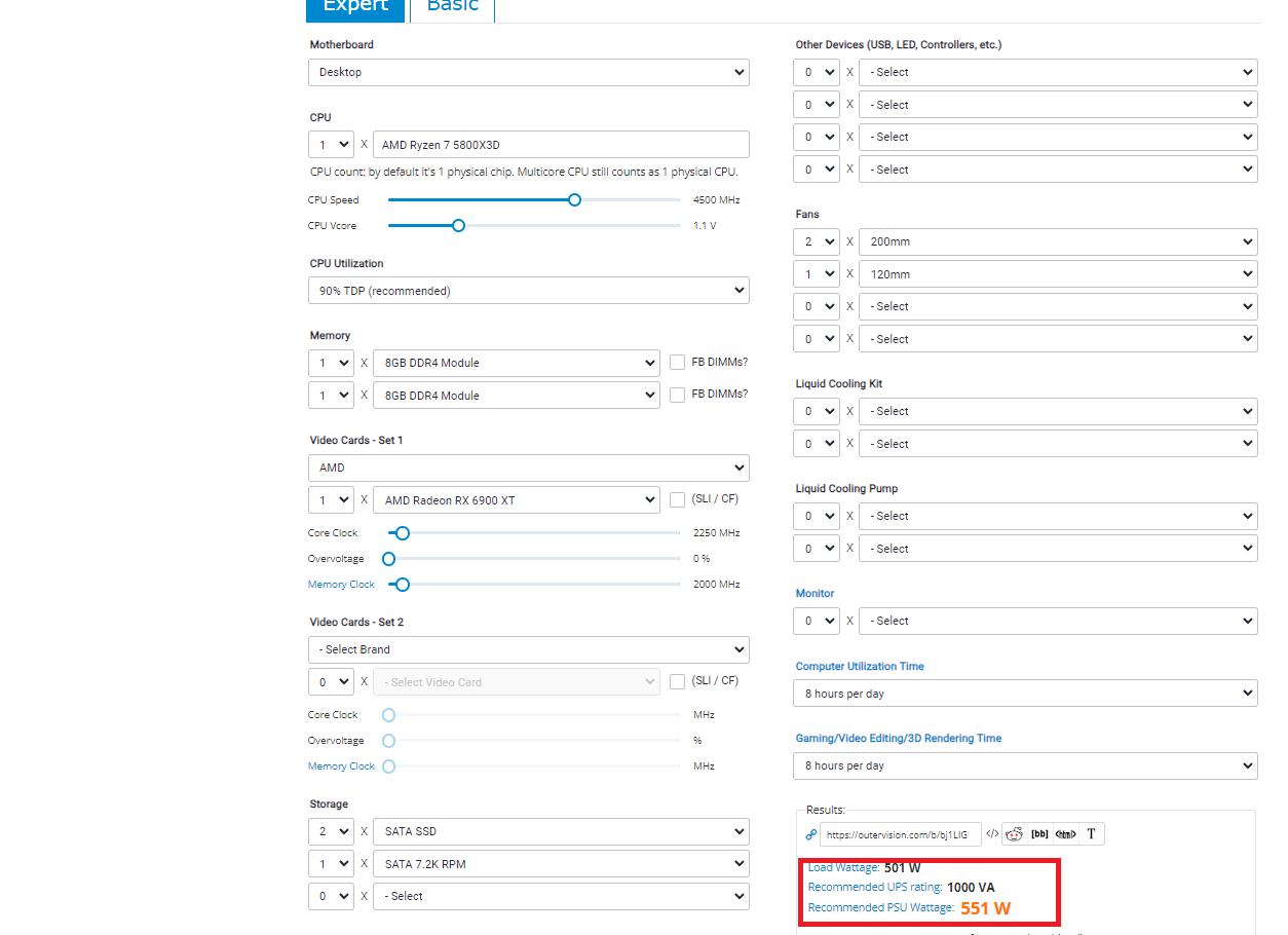 Да мало ли чего они там пишут. Нужны реальные цифры потребления системы. В теории моя система должна столько жрать с 6900xt на борту(на скриншоте и это при условии что система загружена на все 100%) а заходишь в калькулятор производителей БП и че то они там совсем другие цифры рисуют, естественно больше))))) И свои БП предлагают)