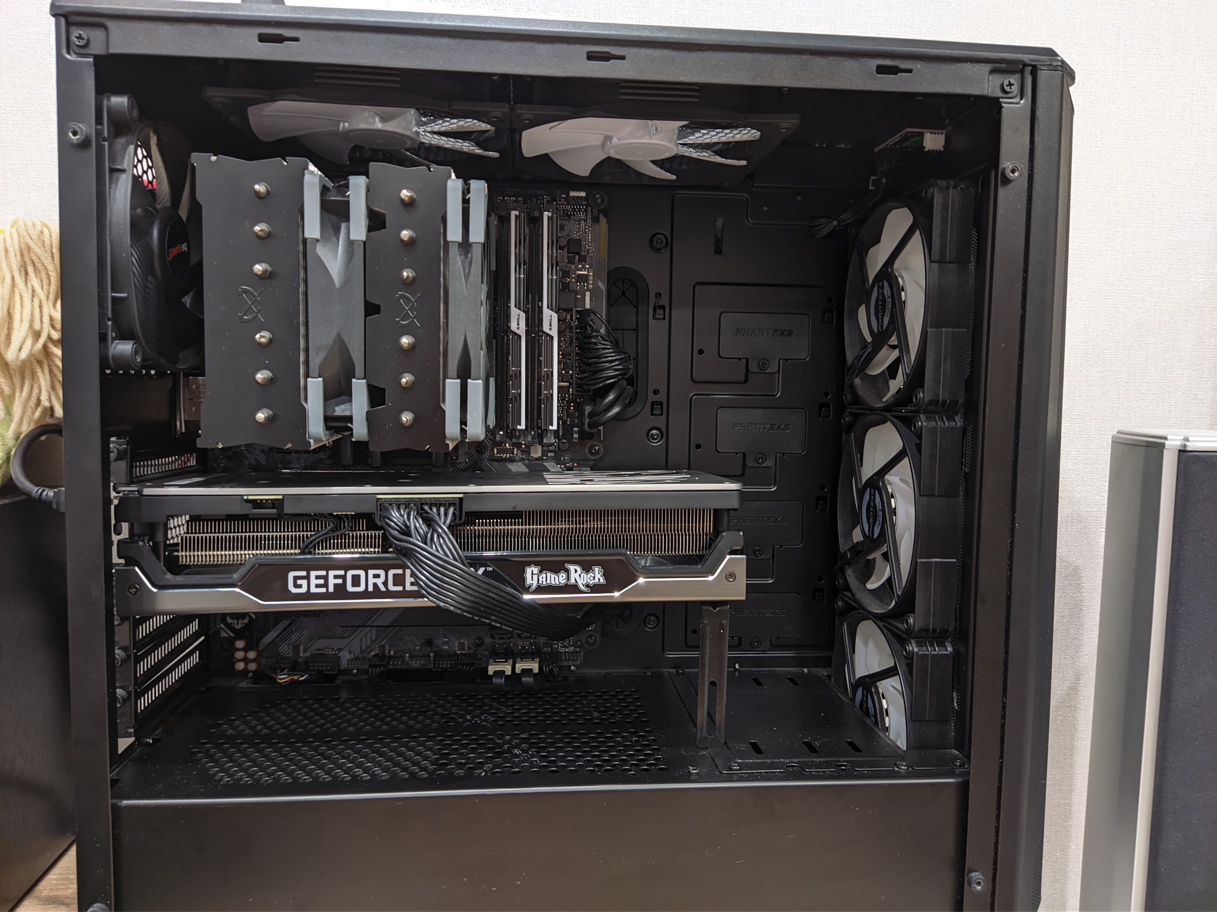 artxays P400A. На фронте комплектные от корпуса, на выдув Silent Wing 3, на выдув сверху Fractal'ы.