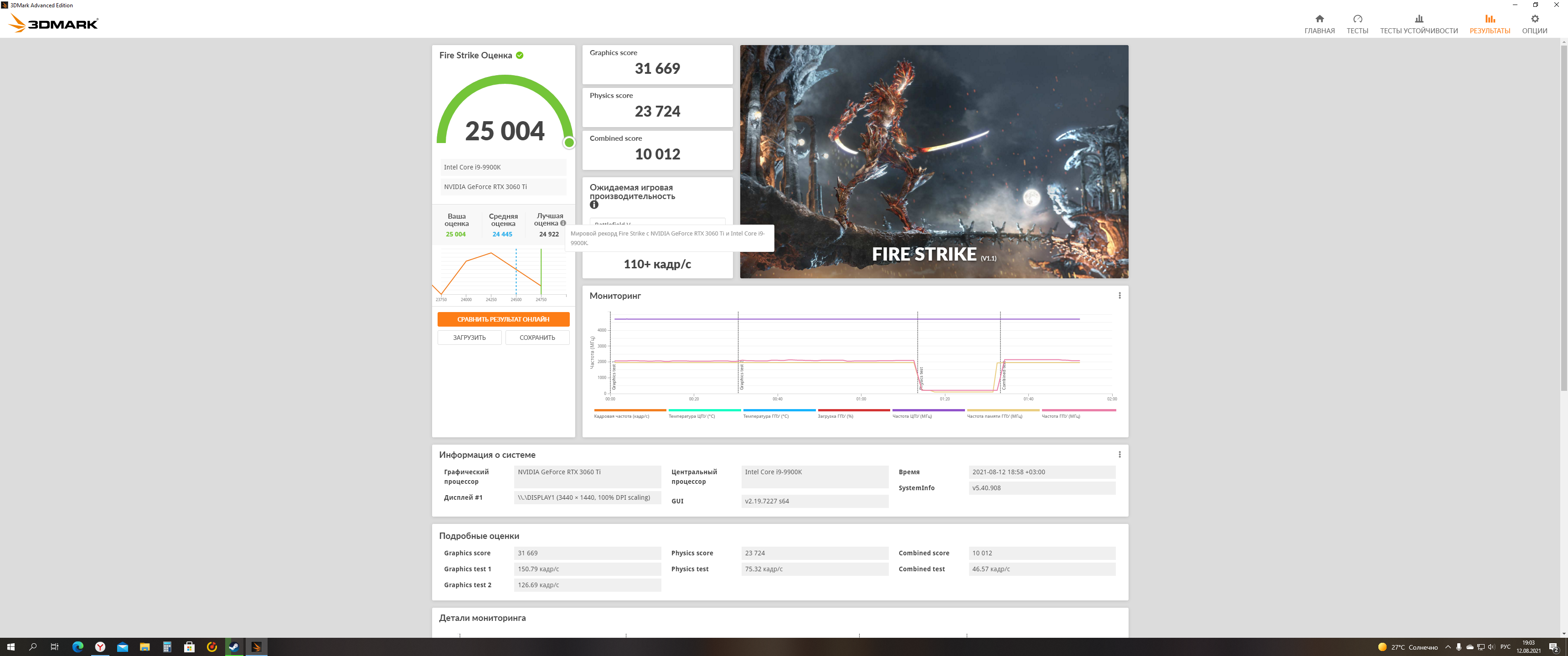 Всем привет. Урвал во временное пользование MSI GeForce RTX 3060 Ti GAMING X, давно отошел от темы тестов видях, на глаз разогнал, нормальный результат для 3060Ти? MSI GeForce RTX 3060 Ti GAMING X? https://www.3dmark.com/3dm/64795957? Потребление ограничено 230 ватт. Вот Файр Страйк походу в рекорды с 9900К и закрепил результат за мной https://www.3dmark.com/3dm/64797291?