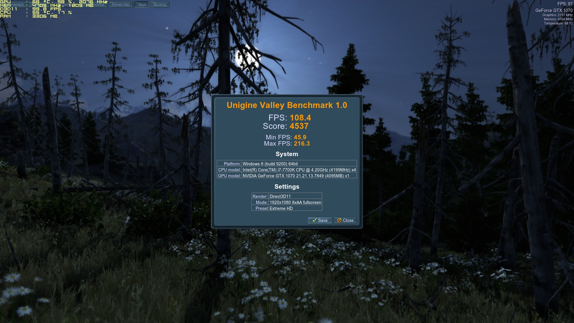 kimster08 У тебя походу 3770к не вывозит GTX1080. Вот мой результат GTX 1070 @ 2076/9400Мгц.