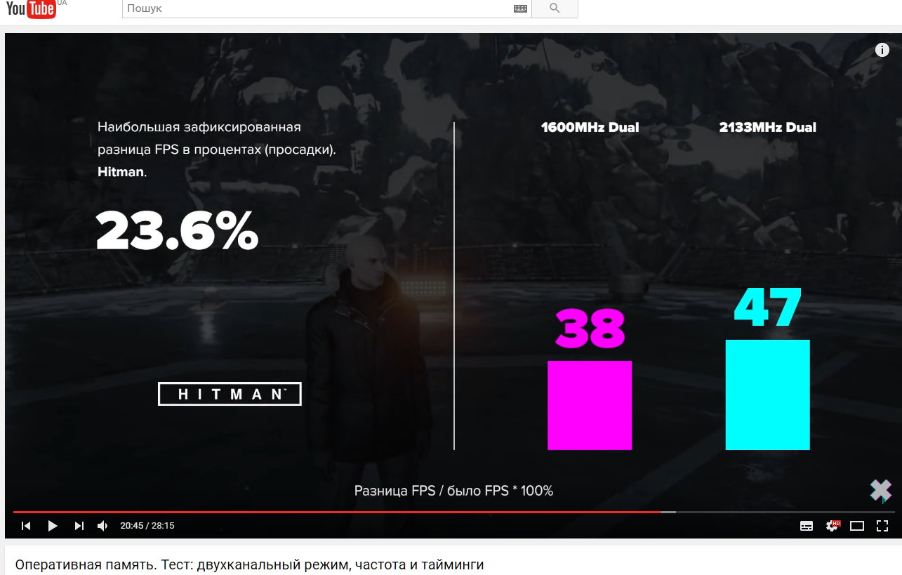 Вот неплохой тест влияния частоты памяти (особенно впечатляет профит в хитмане, с 20-ой минуты)