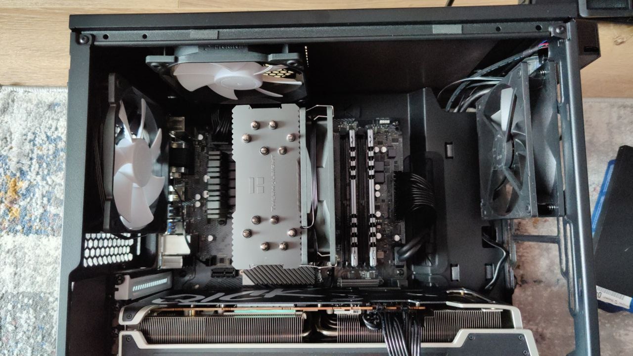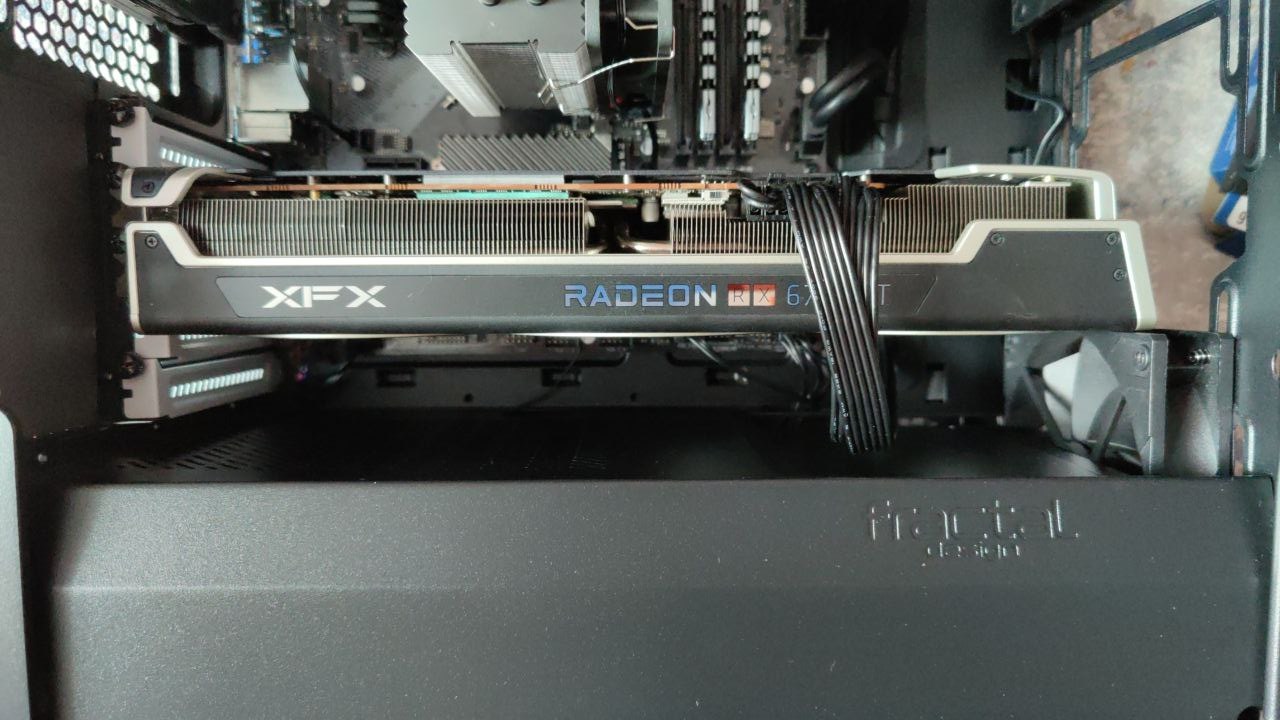 6700ХТ XFX 319 + фурмарк. еле впихнул. вот теперь думаю, снизу ей обдув нужен или нет? солнечная сторона, в комнате жара: