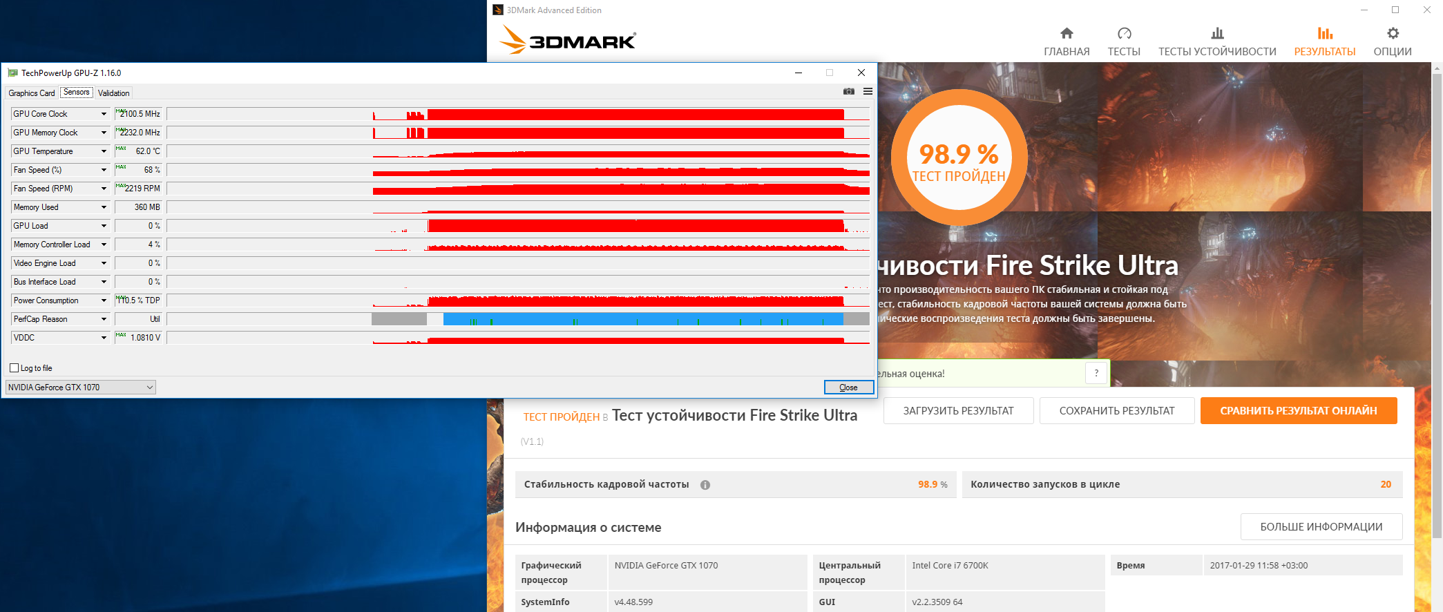На трёх мониторах на разрешении 5760х1080 у меня моя мси 1070 X с биосом от Z версии больше 66 градусов не нагревается в играх. И это при комнатной 26-27. Вентиляторы максимум до 1100 раскручиваются при этом.