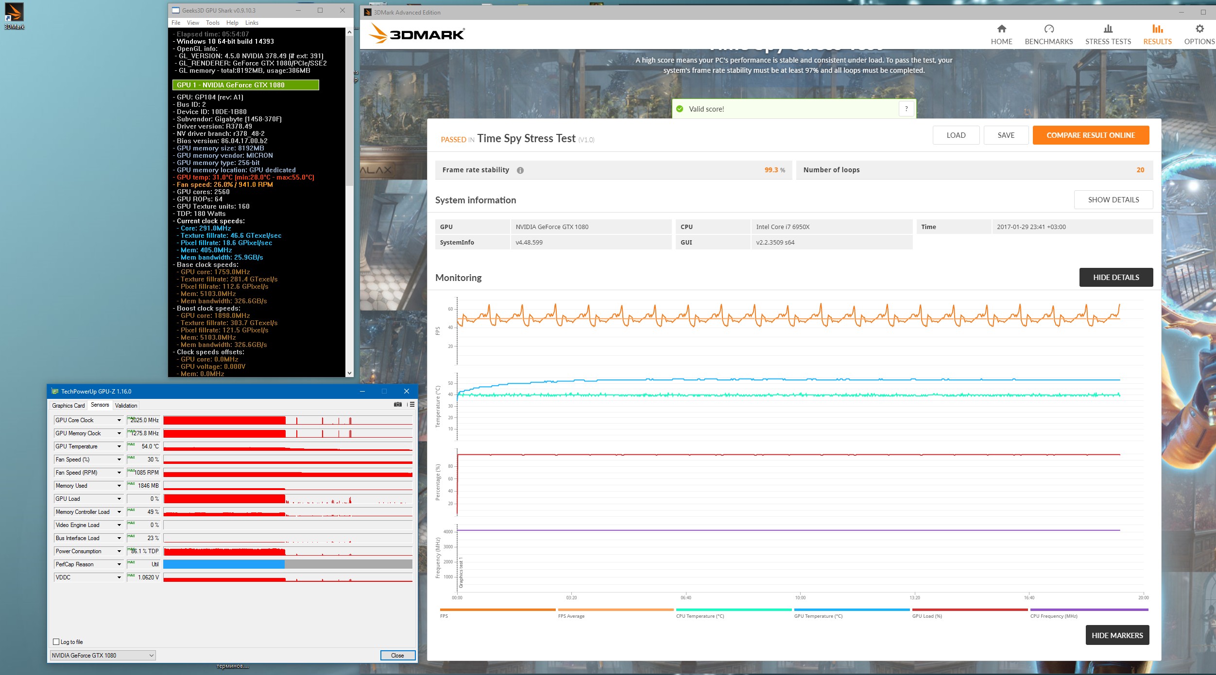 Тут ключевой параметр -максимальная температура при разгоне которая вместе с параметрами разгона (частота ГП, памяти и прочие) мониторятся в GPU-Z при прохождении стресс-теста. А сколько он выдал 99,1 или 97,4 - это без разницы. Скрины 3DMark - просто как подтверждалка - на каком тесте замеры в GPU-Z делались ну и соответственно что сам тест пройден