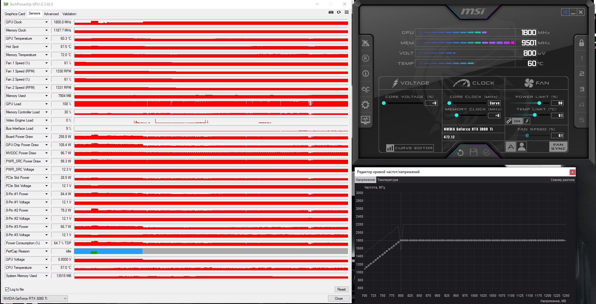 Сделал небольшой UNDERVOLTING на 3080ti От Asus Карту практически не слышно)