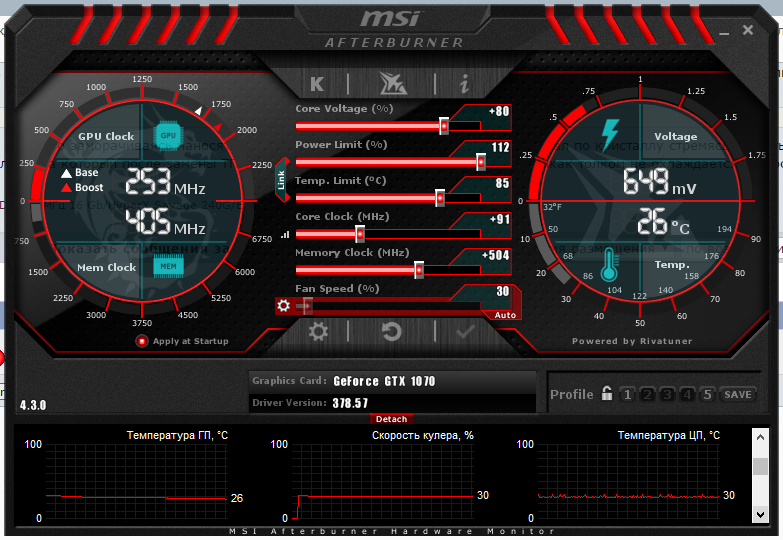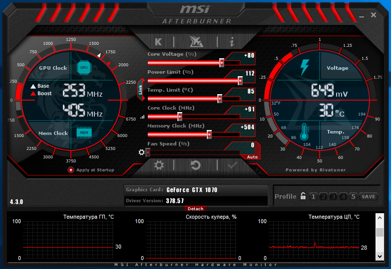 Вот как раз наглядно видно как снижается температура в простое при включении автокулера. Причем не на 40% как по умолчанию, а при корректировке на 30%. - сразу минус 3-4 град.