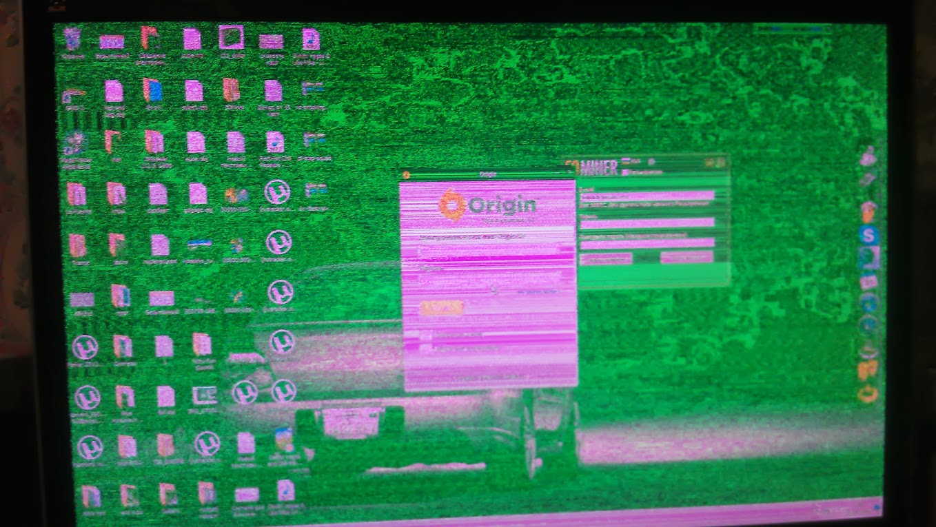 проблема в артефактах или даже не знаю что это,подобных случаев не видел,перечитал куча страниц интернета,не чего не нашел!проблемы в во всех выходах на видеокарте(Zotac GTX 460 1gb) Первый Dvi красным выдает,второй просто мертв,HDMI порт зеленым!я так думаю что все началось с того что переключал dvi порты,а в скором времени и hdmi порт между dvi,все это дело на горячую руку,дабы быстрей смотреть фильм,пару раз были искры,но значения не придал,в итоге тогда и ступанул последний порт dvi,позже купил переходник на hdmi так же переключал до поры до времени,пока тоже не произошла искра,вообще итог по моим словам,сжег порты! Вообщем решил дать в ремонт на диагностику,в итоге содрали 1000р,так еще и сказали надо менять ЧИП,на то время еще работал hdmi нормально,я естественно отказался и тут же купил переходник,пока не сжег и этот выход! Сегодня решил прожарить,прожарил 12 минут в духовке на 230 градусах,оставил открытыми только чип и память,в итоге результата не дало!подскажите что надо сделать чтоб вернуть все на место так как было,так как денег на новую ГП на данный момент нет! Думаю если бы хана чипу была,как мне сказали в СЦ,то не работал бы hdmi,но в итоге значит не он,а что то с портами!вообще выручайте ребят!