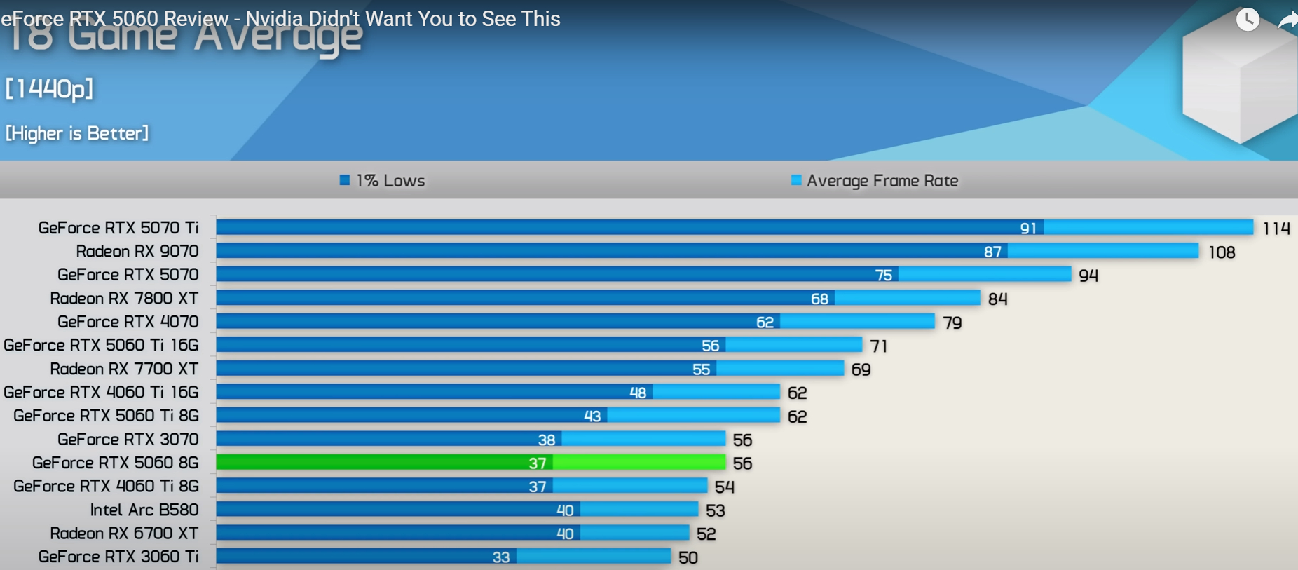 правильнее сказать подтопили 4070, там вначале же они снимали, сначало было вровень и 5060ти по быстрее там на 10-15, потом поставили старые дрова и 4070 была не везде но в некоторых играх быстрее существенно от 5 до 15. Поэтому возрастные нвидиа вообще на вторичке рассматривать нужно с хорошим таким дисконтом.