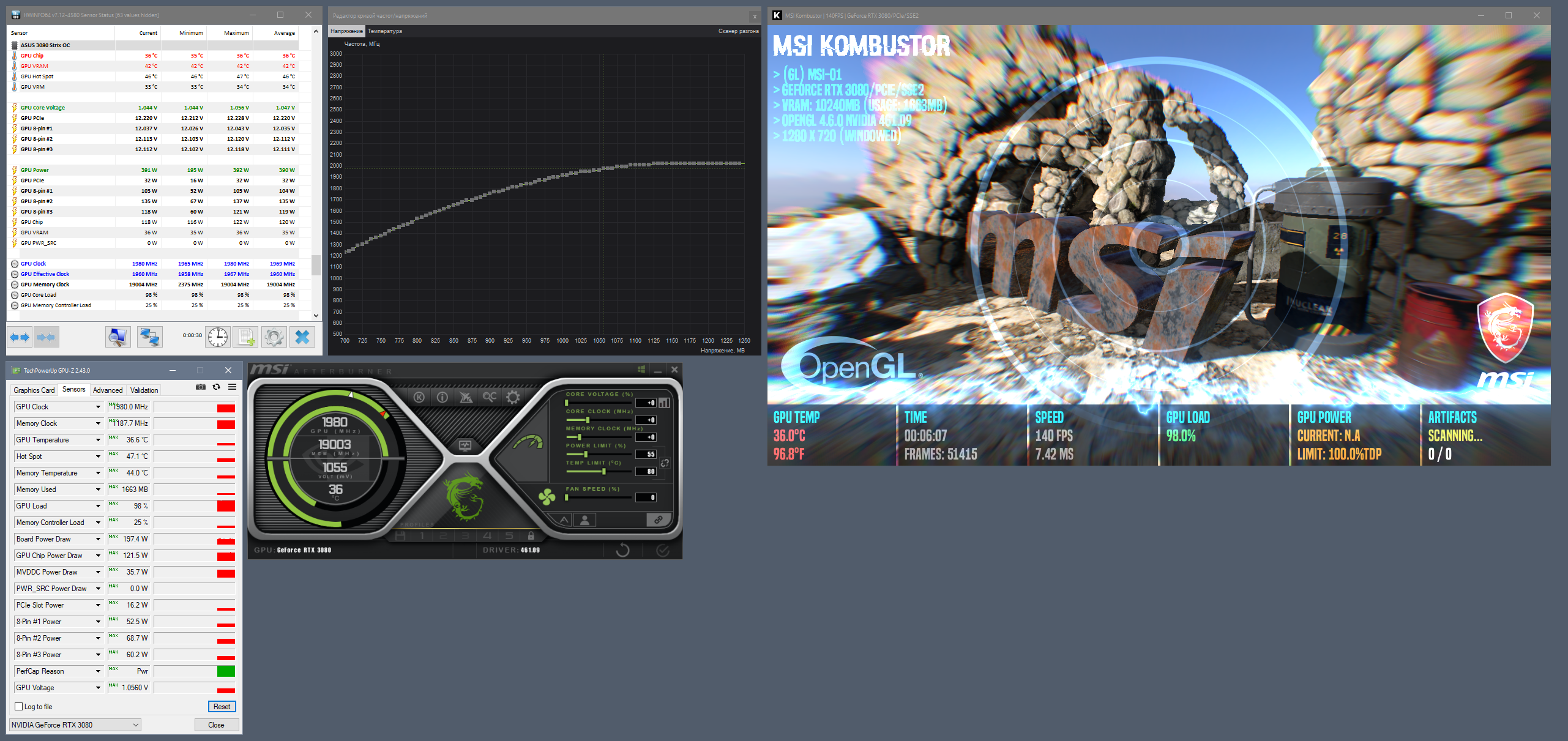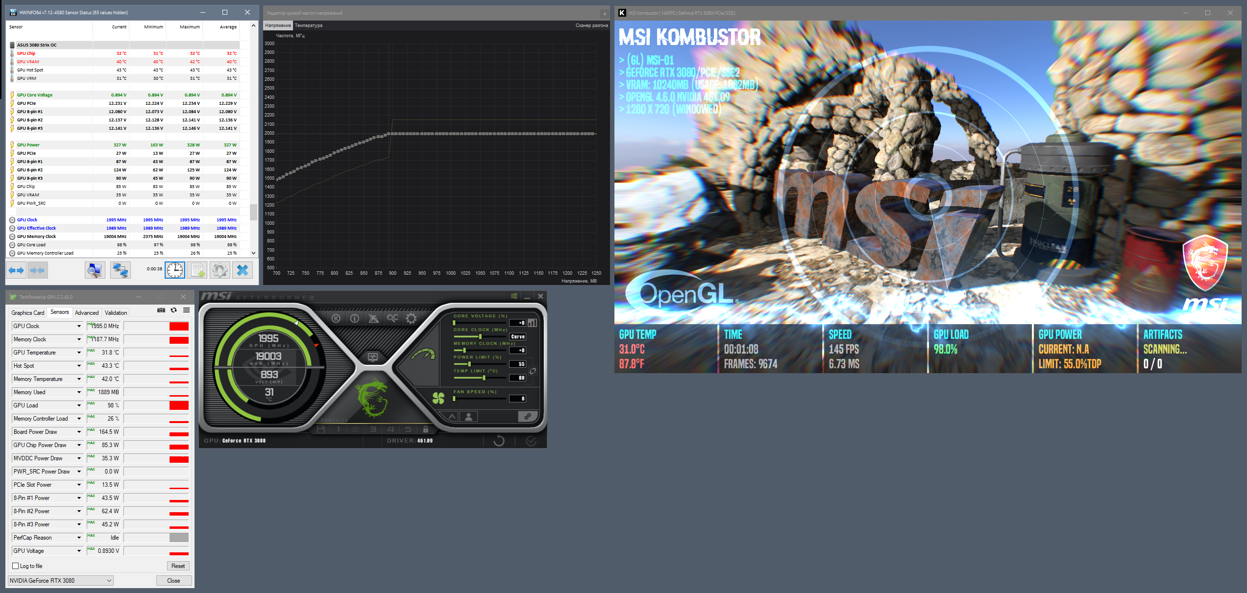 16.09.2020 - создание темы, добавление ссылок на обзоры RTX3080 17.09.2020 - обзоры Palit RTX 3080 GamigPro OC, MSI RTX 3080 Gaming X Trio, Asus TUF RTX 3080, Zotac RTX 3080 Trinity, информация по блокам питания 19.09.2020 - обзор Gigabyte RTX 3080 Eagle OC 10G, Nvidia RTX 3090 22.09.2020 - косметические правки, добавление ссылок 23.09.2020 - добавление базы данных с сайта overclock (спасибо coka) 24.09.2020 - добавление обзоров 3090 26.09.2020 - полезная информация по видеокартам Аmpere (алгоритм работы вентиляторов, причины проблемы с boost), и другое 30.09.2020 - дополнение к полезной информации, добавление обзоров RTX 3090, правки в оформлении 02.10.2020 - начато заполнение F.A.Q. 06.10.2020 - начат сбор статистики по видеокартам 08.10.2020 - добавлена информация по видеокартам Palit RTX 3080/3090 серии GamingPro и GameRock от Palit Support 09.10.2020 - в F.A.Q. добавлена информация по видеокартам Palit, поддержке VRR и прошивке BIOS. Косметические правки 10.10.2020 - добавлены ссылки на обзор архитектуры Ampere. В F.A.Q. добавлена информация по GPU Boost и лимитам. 29.10.2020 - добавлены обзоры на RTX 3070 от разных вендоров 31.10.2020 - информация по драйверам 04.10.2020 - в F.A.Q. добавлено пособие по работе с кривой MSI Afteburner 06.11.2020 - изменения в F.A.Q. по отличию видеокарт Palit 18.11.2020 - добавлена информация в F.A.Q. по BIOS от Palit и EVGA 20.11.2020 - дополнен F.A.Q. (достаточность RTX3000 для FHD/QHD/4K мониторов) 25.12.2020 - дополнена полезная информацию по картам 28.01.2021 - пример настройки курвы 03.02.2021 - обзор EVGA 3080 с андервольтингом 04.03.2021 - добавлена информация по замене термопрокладок на RTX 3080 31.03.2021 - добавлен BIOS с поддержкой Resizable BAR от Palit 05.08.2021 - добавлены обзоры 3080, 3080Ti, 3090 от occlub 12.02.2022 - добавлена информация по термопрокладкам 21.02.2032 - добавлена информация по термопрокладкам от T[]RK
