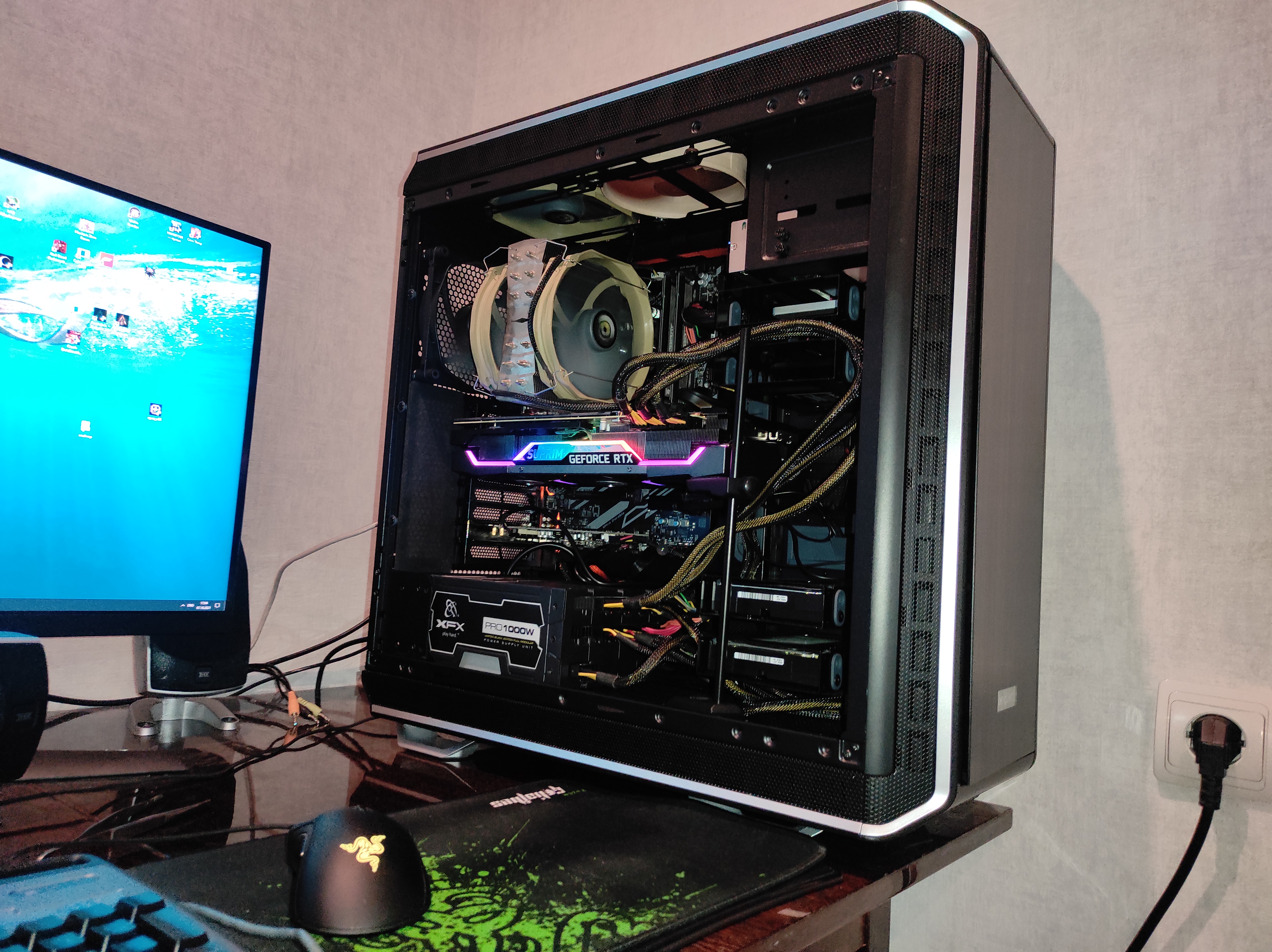 А если боковую ? А разгон максимум ? Радиатор жирный!!! А если подсветочку отключить сколько потребляет ? А почему на верху кульки разного цвета ? Подпорка зашибись