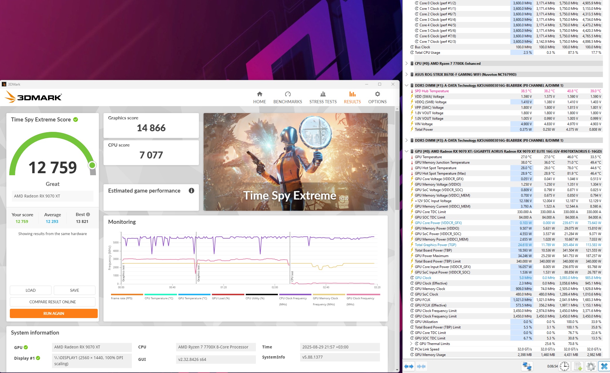 Добавлено спустя 8 минут 2 секунды: NicRim О! А можешь выложить рез-т TimeSpy и TimeSpy Extreme в стоке с телеметрией HWInfo, типа как на скрине? Интересно, насколько TSE CPU-bound.