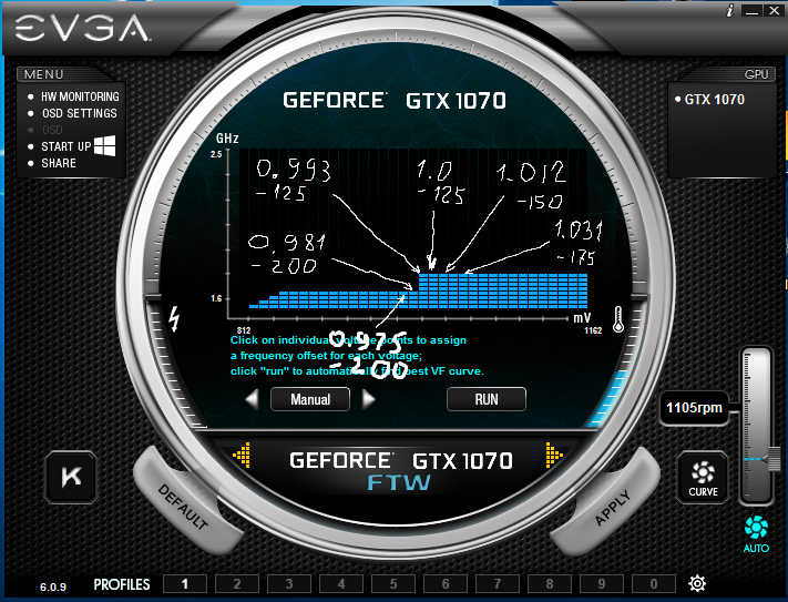 Т.е. все точки вниз до упора. Упор -200МГц. А точка 0.993 вверх на -125 Но опять же я особо не заморачивался, по идее можно выстроить идеально минимальный вольтаж / минимальная частота.. В MSI AB скорее всего проще и удобнее привязать стоковую частоту к минимальному напряжению.
