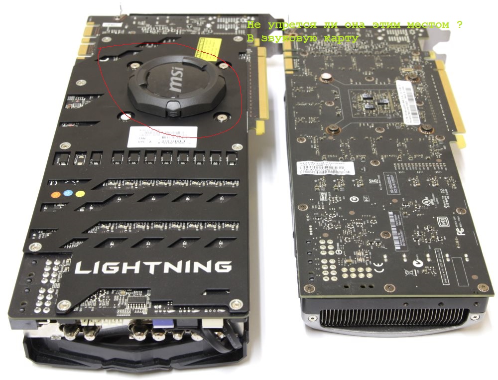 Хочу взять msi geforce gtx 780 lightning(день рождения скоро), но проблема в том не упрется ли видеокарта в звуковую карту ? У меня Creative x-fi Titanium HD стоит, в нижний слот не вариант, ставить тогда видеокарта упрется своей СО