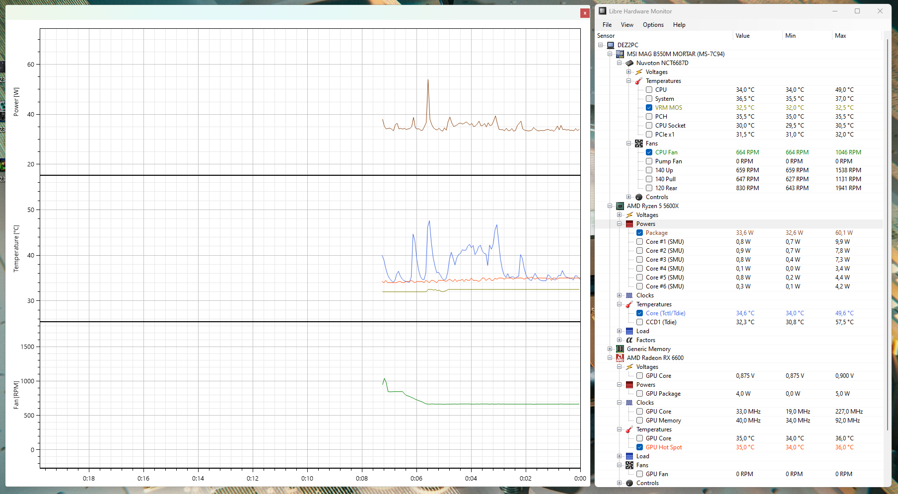 Не нужно ничего снимать, достаточно мониторинга, на то он и создан. Можете например подержать в фоне LibreHardwareMonitor, там постоянно пишется график на все датчики и каждый их них в любой момент можно вывести на экран...например температуры питальника, видеочипа, обороты вентиляторов и увидеть что там происходило во время и после игры.