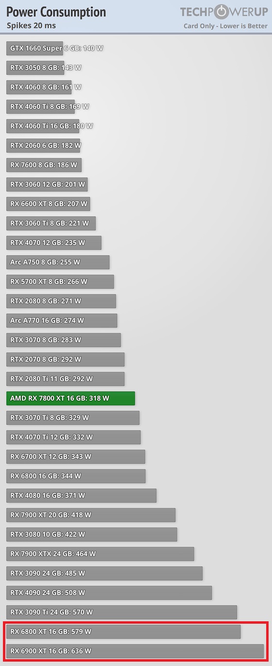 Раньше я думал мощности блока 550 вт не хватает и вот и нет, дело в пиках. - с этой точки зрения 6800хт и 6900хт больные карты