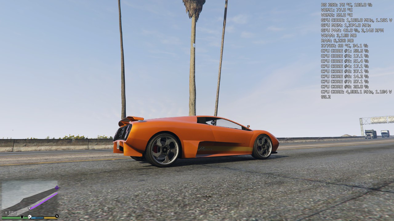 Закрытый корпус Fractal R5, спереди 2х140mm 1000rpm, сзади 1х140mm 1300rpm. Сейчас 1100/6000 vrm 96 максимум видел в CoD AW (кстати очень хорошо греет карту по сравнению с той же ГТА 5). Проверял в самых греющих играх (DayZ, Warface, CoD AW - всё на максимальных настройках, ток в cod 4x ssaa, остальное макс.). А то чувак скинул мне в вк скрин сегодня, у него вообще вот такие температуры в гта 5, правда 290, но тоже сапфир. Частоты, напряжение и обороты те же. А у меня там VRM 85 градусов оба, чип так же как на скрине. Вообще чип у меня как на курорте - выше 80 никогда не видел.
