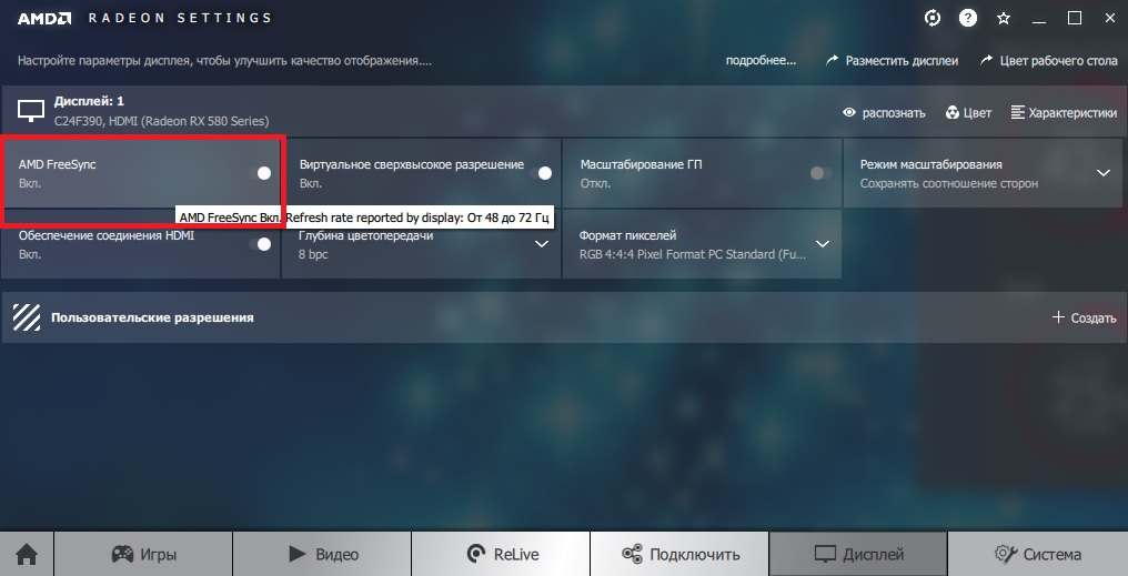Комментарий к файлу: Максимальный обработчик - диапазон для Freesync составляет с 48 по 72 фрисинк.jpg [ 90.19 КБ | Просмотров: 2118 ]