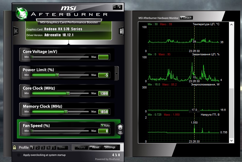 Всех с Новым годом! Есть вопрос, есть видеокарта XFX Radeon RX 570 RS 8GB XXX Edition. Видеокарта в андервольте + оверклокинг легкий (1286 базовые по ядру превратились в 1300, память 1750 => 1850), напряжение с дефолтных 1150мВ => 1000мВ. Заметил что очень-очень редко, 1-2 раза в день, а то и не каждый день в простое (или в серфинге) напряжение на видеокарте может прыгнуть до значения 1550 мВ на мгновение. У меня вопрос, исходя из этого - это нормально, и чем чревато ? Как ведет себя карта в полном стоке с заводскими настройками я не знаю, но вопрос в том, знает что это за прыжки, и что по чем ? Конкретно на скрине, я запустил ролик на ютубе. При нагрузках, в играх и т.д. карта держит положенные 1000мВ +-