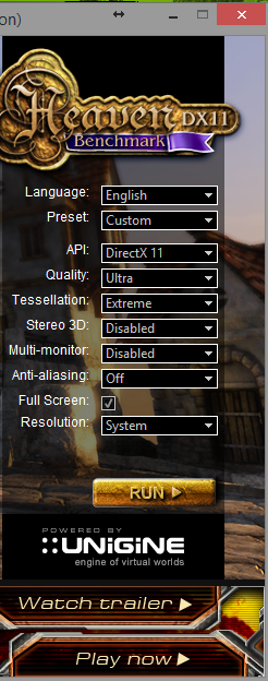 Всем привет. Может кто-нить протестить ПЕЧ970 с такими настройками в Heaven Benchmark 4.0 ? (если не затруднит)