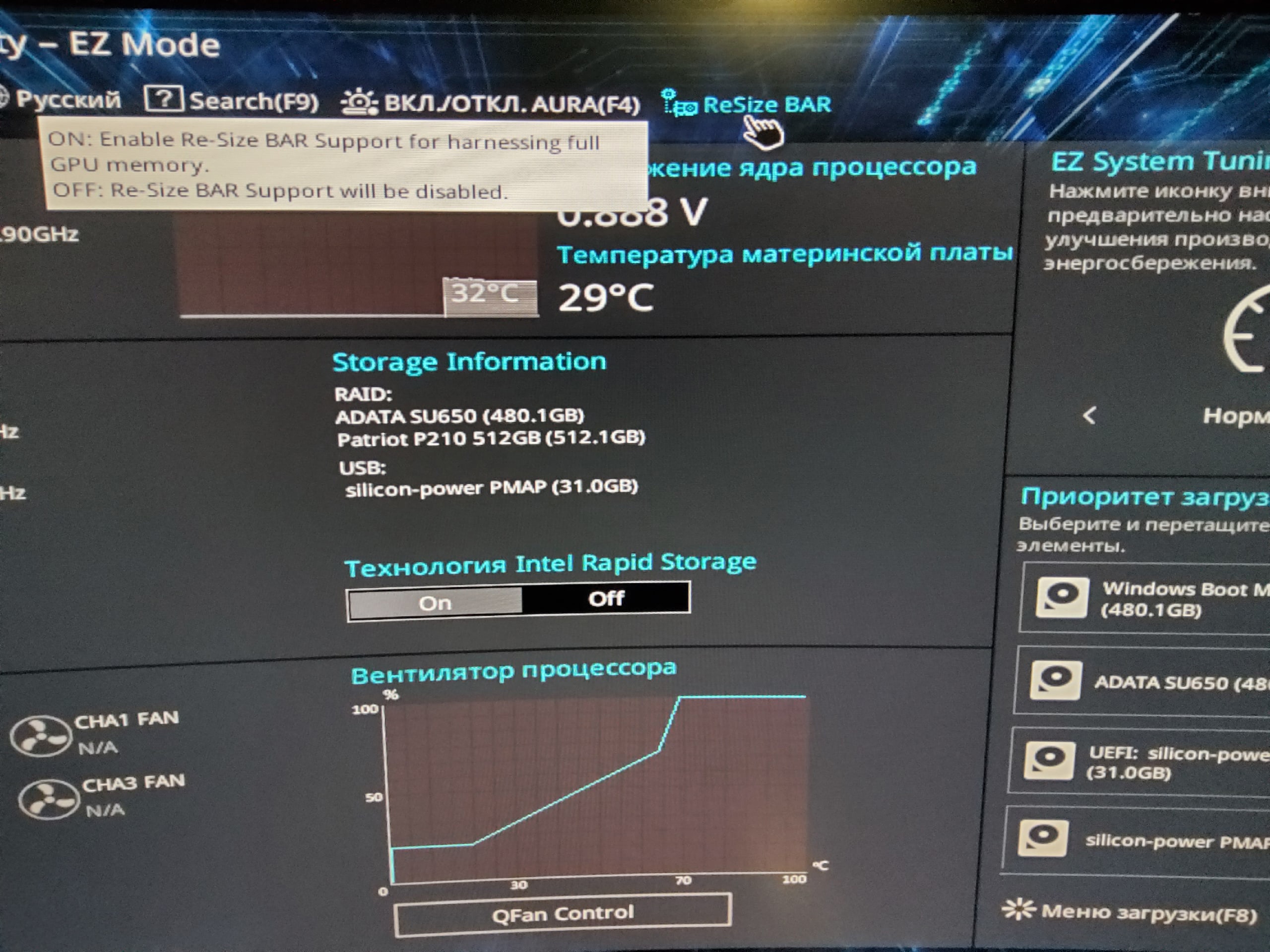 Re-Size BAR на интеле работает только с НВ пока и то 3060... скорее всего далее добавят всю 30 серию, возможно и АМД