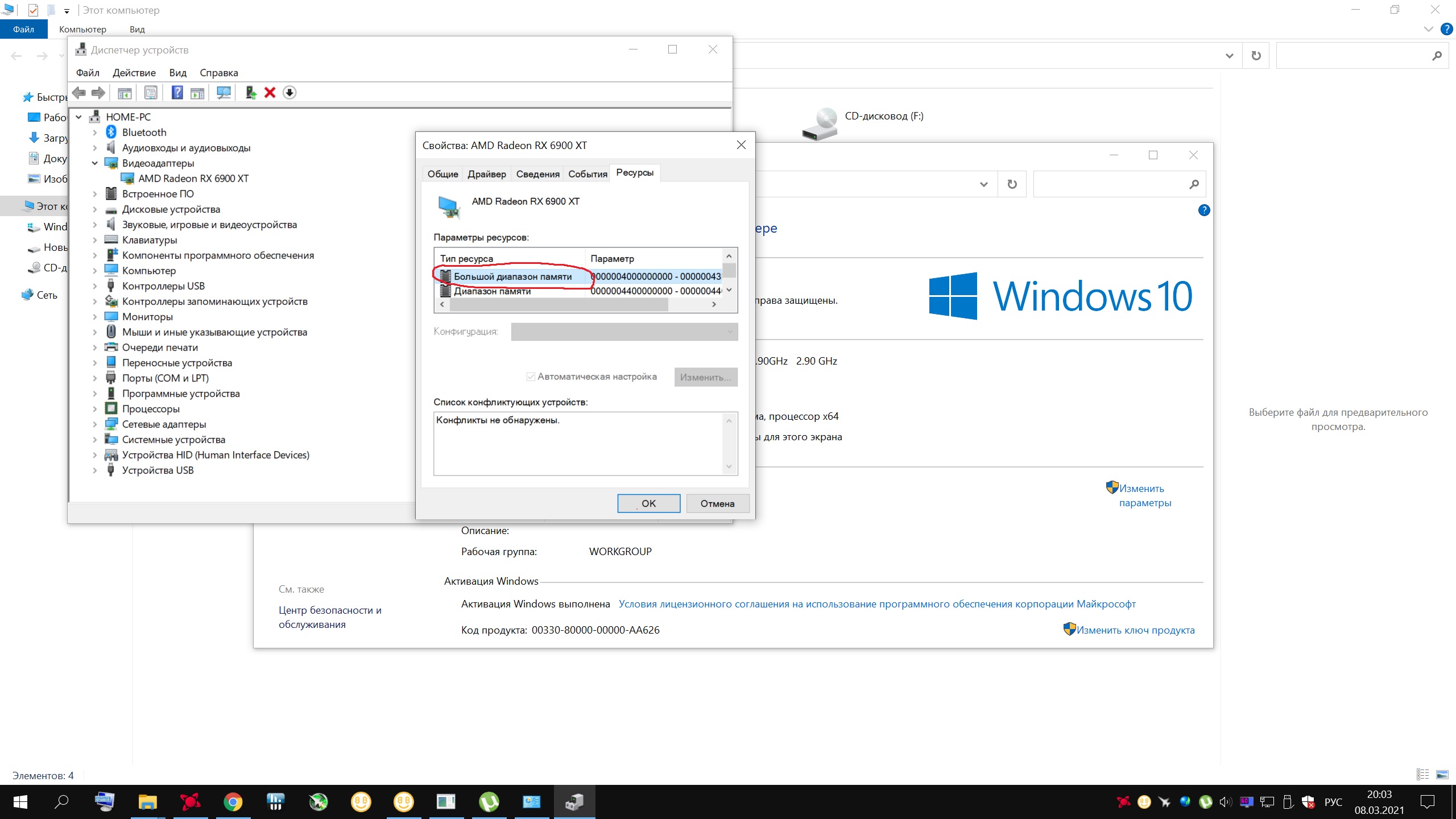 Sanek6110 я не знаю был ли он там, или появился после того как я включил ресайз, в общем у меня в этом столбике много строчек, среди них есть и "большой диапазон памяти" и "диапазон памяти" и диапазон ввода/вывода, причем "диапазон памяти" у меня повторяется 3 раза. У вас в этом списке почему-то только одна строка, странно.