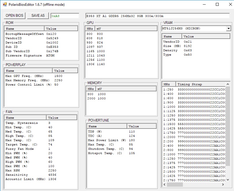 Биос родной.https://www.techpowerup.com/vgabios/190 ... 192-161222 Частота сканирования стоит 100ms,то есть идет кратковременный скачек единичный,по логу,и дальше нормально. Вот так я подредактировал биос:потребление 180 поставил,было 142,и вольтаж сменил