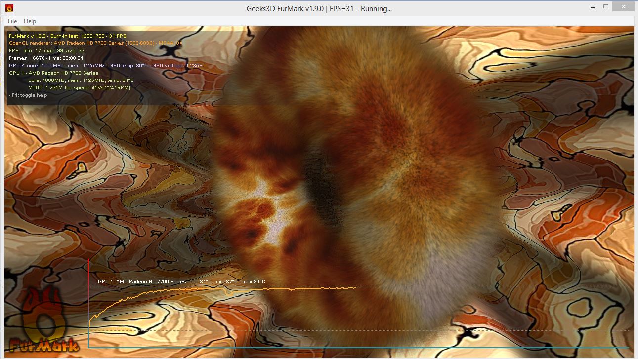 minorx ASUS конечно перегнули..с напругой на чип при такой частоте..перестраховались.Что касаемо стартового разгона пропеллера на 100%, то это система очистки такая и её не убрать (была у меня 6670 от асуся с такой же системой охлада,тот же алюминь с кожухом) я пытался редактировать в БИОС...и...не увенчалось успехом.Температура в бубле высоковата с таким напряжением на чип..хоть вы бубль и не гоняете целыми днями(а это чудовищная нагрузка на карту) ,всё равно в играх будет греться достаточно.Рекомендую скачать прогу для редактирования и прошивки биоса,и слить СВОЙ же БИОС с карты,отредактировать напряжение на чип и параметры пропеллера в зависимости от температуры.В моём случае я так и поступил.(ссылки на проги есть в теме).На скрине ниже- бубль с тестовыми частотами до прошивки..напруга на чип 1.75-1.2v.У карты слабая система питалова 2+1( 2 фазы на чип и одна на память если мне память не изменяет)..и разгонять память и чип вместе она не даёт...тут или чип гнать или память.Сейчас карта работает 1150 чип и 1300 память, можно и больше, но толку особо нет выжимать соки ,прибавки нет а если и есть то мизер( а нагрузка на цепь возрастает как и температура),по сравнению с нынешними частотами,гнал карту с напругой в 1.25 и добился работы в 1240Мгц память пришлось снизить до 1200 Мгц(сбоила) при частоте чипа в 1000 Мгц (и снижении на него напруги естественно)память разогналась до 1620 Мгц.Как то так. P.S.Забыл добавить температура в бубле после 5 минут(и далее) не превышала 68Гр при напряжении на чип ~1.2v и частоте 1.1Ггц.