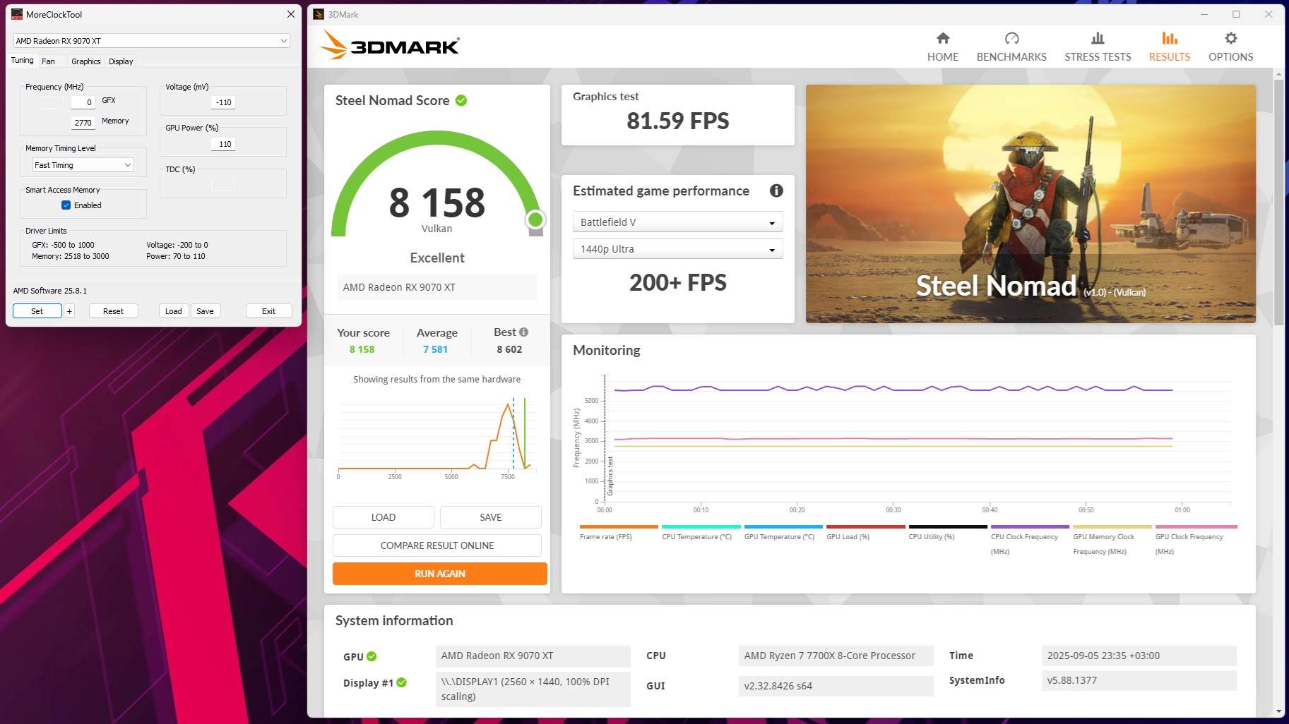 Ну у меня RX 9060 XT все таки, может результаты все таки разные будут В этом Cronos новом частоту 3520\3540 держит. Но ее надо отсечь, а то GPU пытается в 3600 - и крашится в некоторых местах.