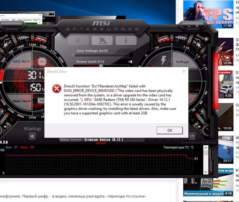 Парни, всем привет, вобщем имеется видео ASUS GTX680 4GB, карта отлично работает, я и по сей день доволен её производительностью, но есть одна игра, батлфилд1, я думаю вы уже поняли, о чём я, проблема встречается на 600й и 700й серии, также по моему замечена на видеокартах серии 1050ti, вобщем при игре в бф1, в мультиплеер игра в любой момент вылетает с ошибкой видеодрайвера, причём важно то, что в компанию можно играть сколько угодно, и там всё хорошо, но в бф1 - вылеты, если кто знаком с проблемой - решения так и нет? И ещё, буквально неделю назад я сидел на сокете 1156 и xeon x3460, так вот там при разгоне зиона выше 3,3 игра тоже вылетала, но на частоте 3,2 работала стабильно и без вылета видеодрайвера, я сделал вывод, что проблема в высокой частоте проца, но теперь i7 2700k не охота даунклокать до 3,2 ггц. Есть скрин проблемы, скрин не мой, но выскакивает это же самое, только в игре бф1, и только в мультиплеере.
