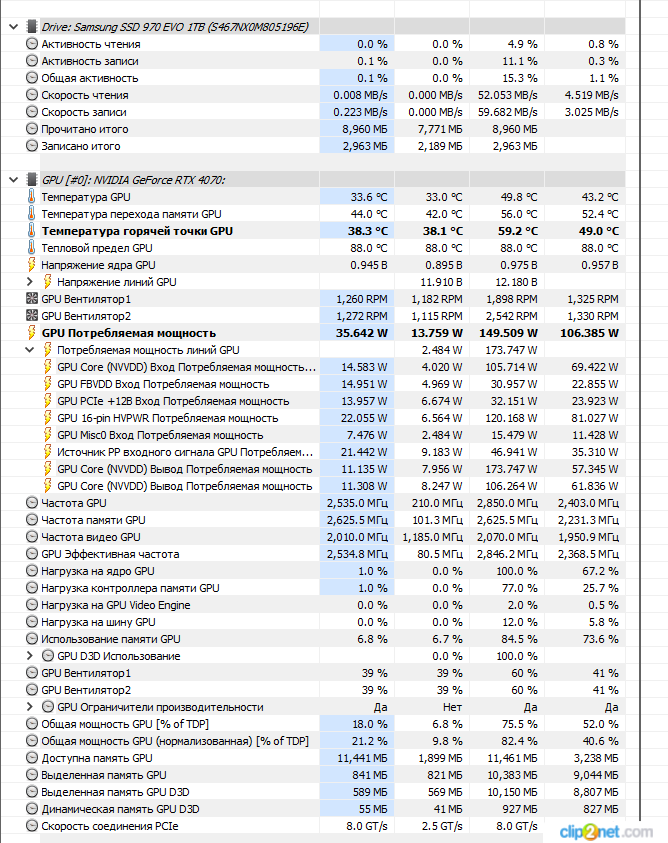 на своей 4070 андервольтнул 0.975v и расширил паверлимит до 110%, GPU 2910mhz, потребление 149w, редко прогревается до 50, память 60-63, все крутится