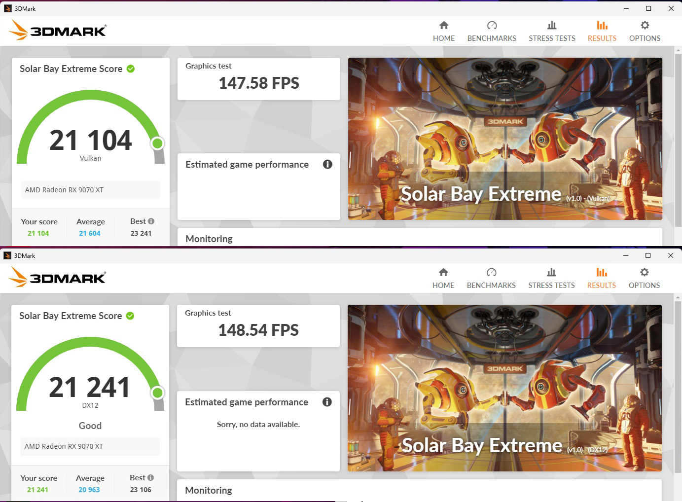 А в Solar Bay Extreme в DX12 так же на пол фпс-а больше, 147.2 vs. 146.6 Я уже голову сломал, чо за хрень с этим номадом в вулкане. Один только вариант остался непроверенный, у тебя кстати не Win 11 случайно?