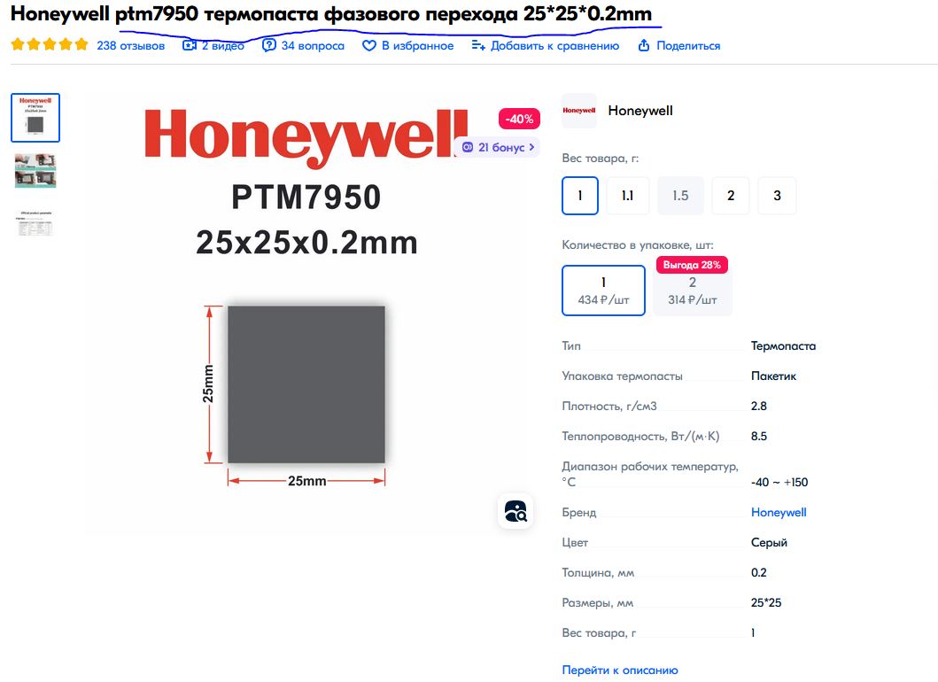Понятно, у меня по ссылке выдало "По вашим параметрам ничего не нашлось. Попробуйте сбросить фильтры." А vol2008 скинул ссылку на PCM, вот я и подумал что там было нечто аналогичное. Термопрокладку, пусть и жидкую, на GPU не стоит наносить.