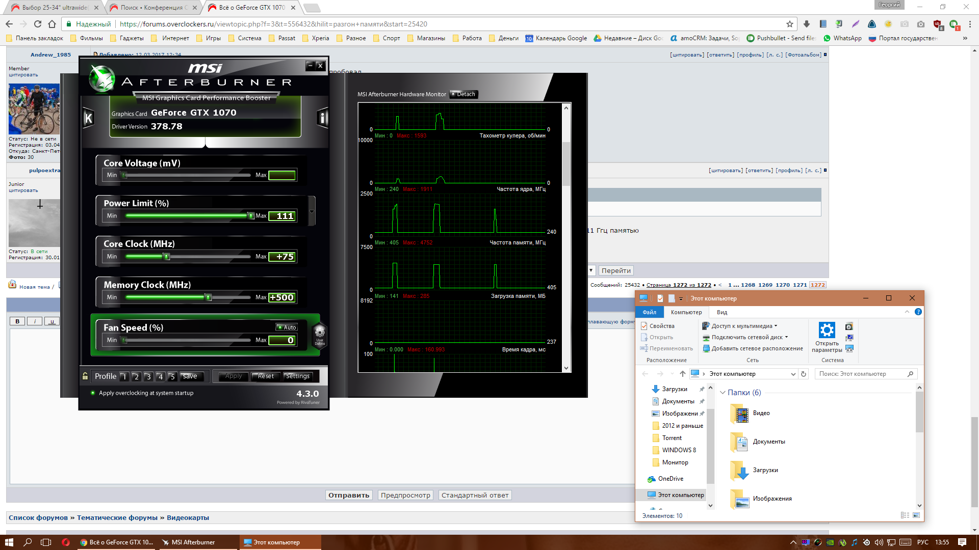 Друзья, подскажите по памяти. У меня память самсунг и она вроде не плохо гонится. По крайней мере я никаких ошибок и вылетов не обнаружил при +750. До скольки гнать все же безопасно? Я сейчас поставил +500, пойдет ли это для постоянной работы? Карта Гигабайт 1070 g1 gaming температура больше 65-67 не поднимается. Скрин настроек ниже