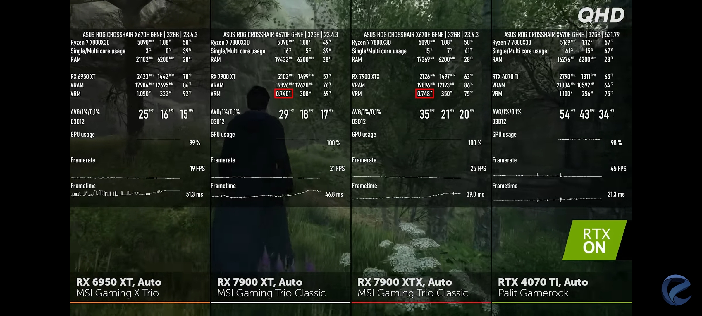 Добавлено спустя 1 минуту 40 секунд: В этой же игре 6950 стабильно держит частоты при напряжении 1.05, а 7900xt скатывается до 0.7 вольт , что просто позорно в плане энергоэффективности