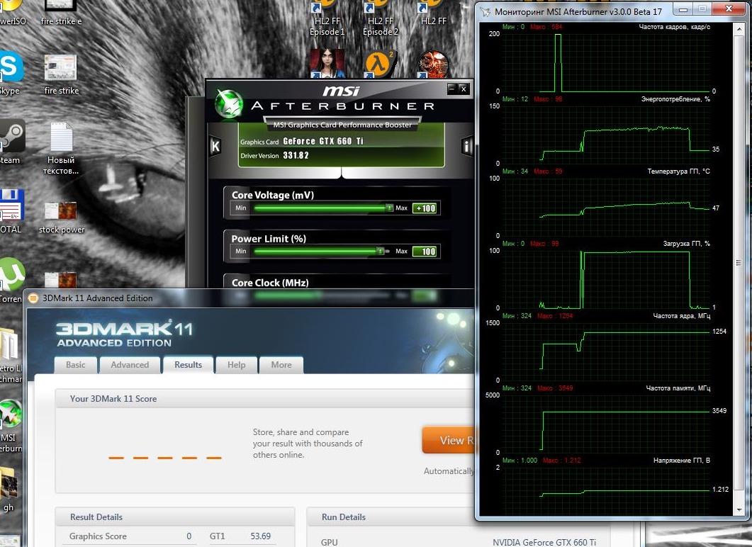 JAWA-163rus я знаю что просаживается до 1200 и еще меньше в этом 3dmark11 ,я говорю про самую большую частоту... ЗЫ. ты через биос гонишь иди через MSI Afterburner ?