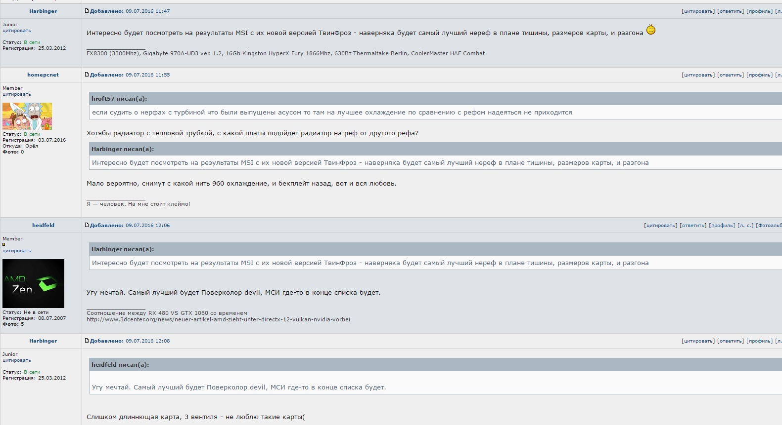 Итак, господа - значит как и предполагалось, нереф фирмы МСИ самый оптимальный? Дэвил я забраковал ранее из-за длины видеокарты и трех вентилей.... Асус Стрикс, похоже, туда же - хоть чутка и получше.... Сапфир Нитро - ни ок..... Надежда на Гигабайт?
