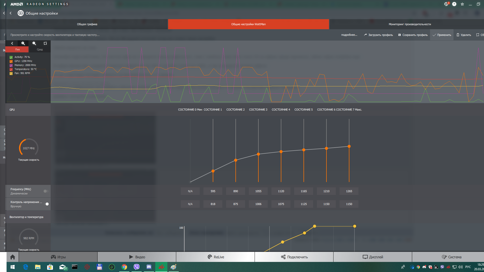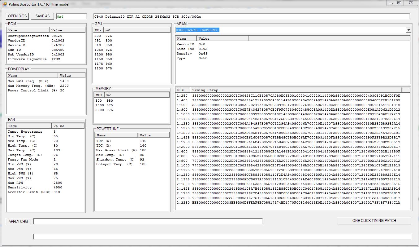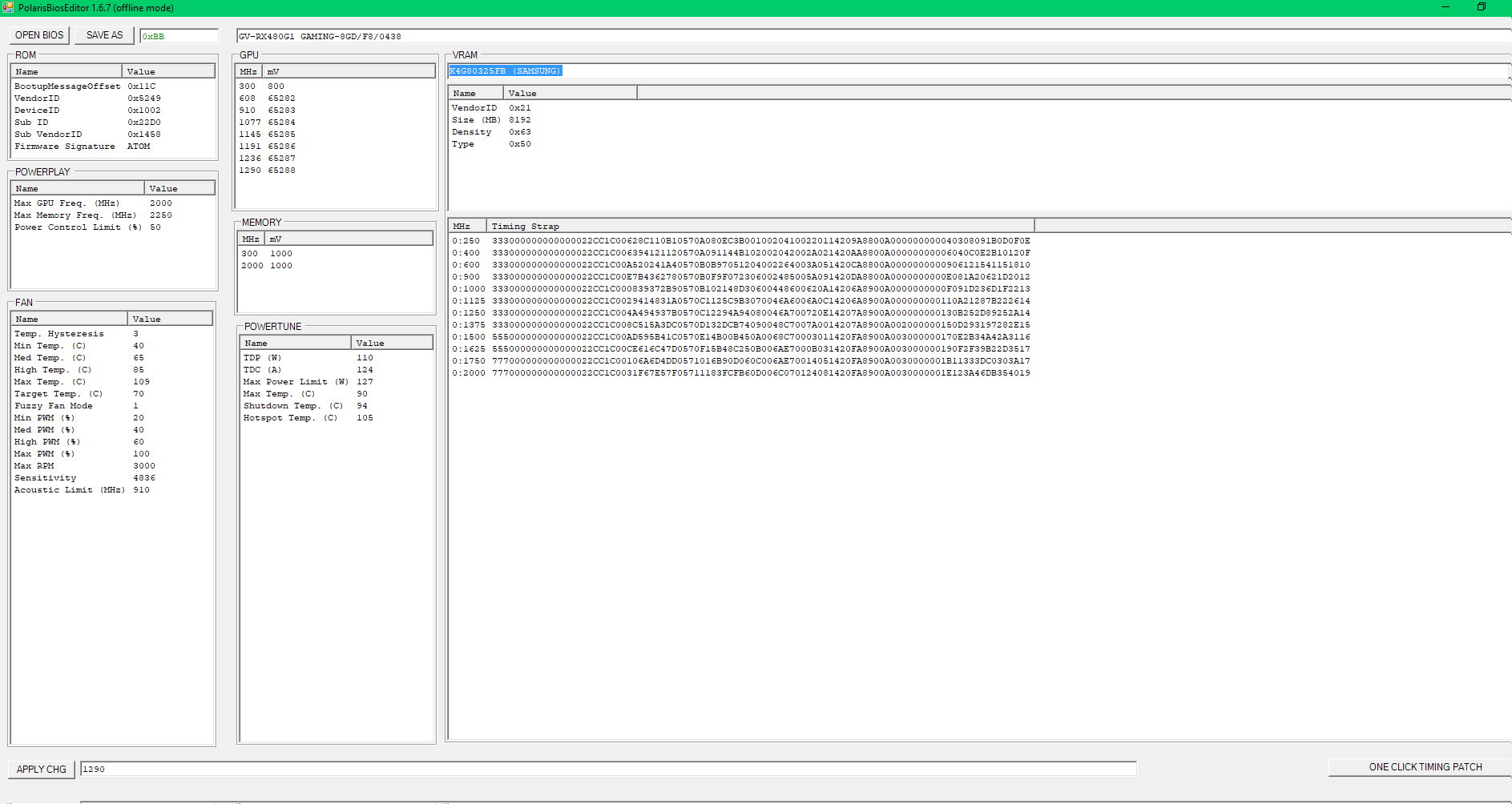 Прежде чем биос править, лучше бы подобрать частоты/напряжения в ваттмане, какие настройки будут оптимальными, наверняка неизвестно, это зависит от карты. Скорее всего, будет работать 1000 мВ 1200 МГц и тайминги от 1625 на всех остальных более высоких частотах. В разделе GPU, там где "65288" и.т.п. можно вводить цифры в милливольтах, тоже сперва смутило это. У меня сейчас, с прошитым биосом от 580 вот такие параметры